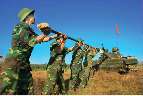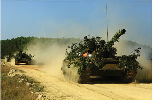 Đội hình xe tăng của Lữ đoàn tiến vào trận địa.