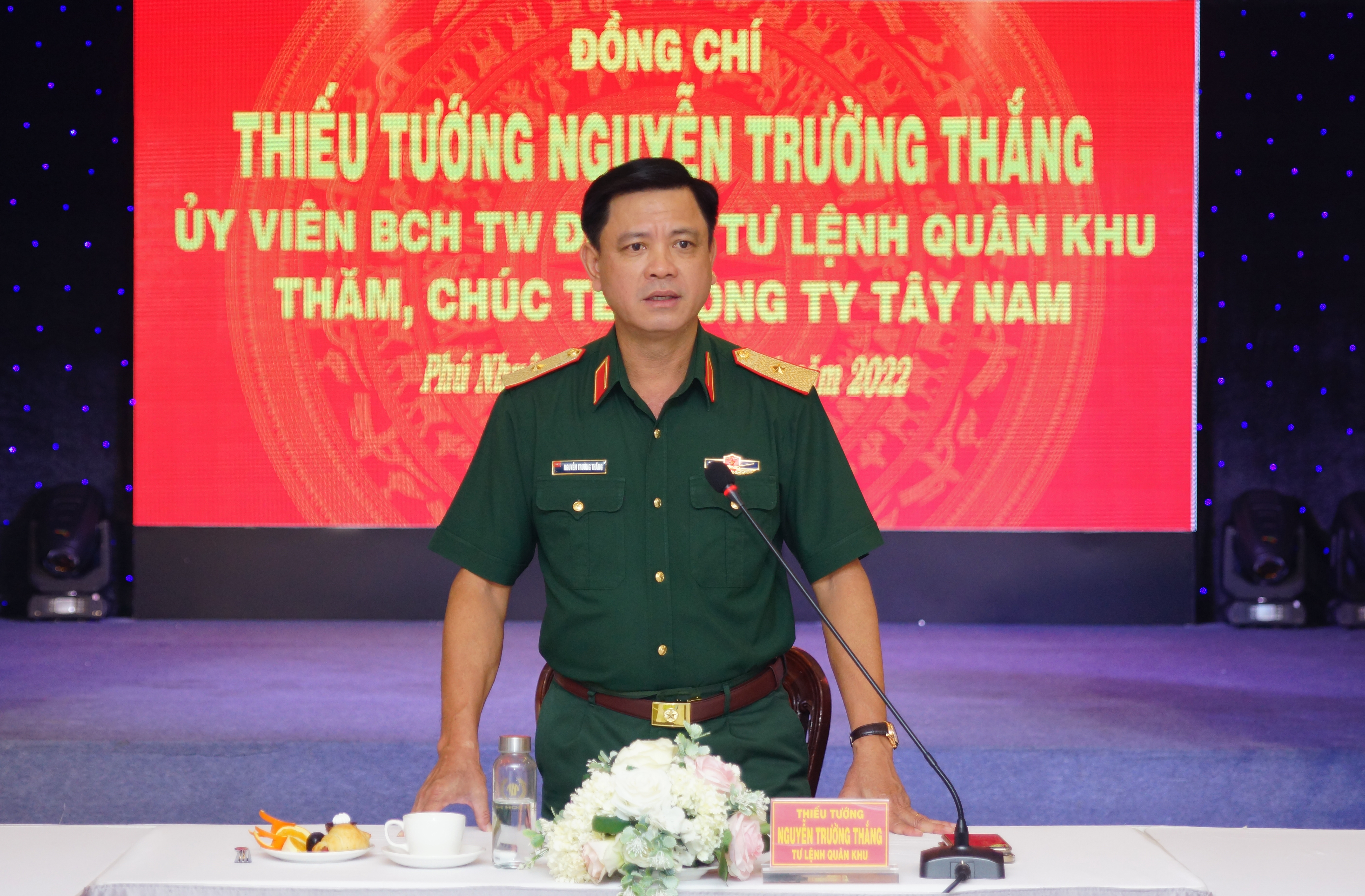 Thiếu tướng Nguyễn Trường Thắng đánh giá cao sự nỗ lực, trách nhiệm cao của Ban giám đốc, cán bộ, công nhân viên các công ty trong thực hiện hiệu quả sản xuất kinh doanh, hoàn thành nhiệm vụ trọng tâm và phòng chống dịch hiệu quả. Năm 2022, các công ty quán triệt thực hiện nghiêm quan điểm, chủ trương của Đảng ủy, Bộ Tư lệnh Quân khu về sản xuất kinh doanh đúng pháp luật, đoàn kết, hiệu quả, an toàn; gắn sản xuất kinh doanh với quốc phòng an ninh. Thực hiện nghiêm nguyên tắc tập trung dân chủ, nâng cao năng lực lãnh đạo toàn diện và sức chiến đấu của các cấp ủy, tổ chức Đảng; xây dựng đội ngũ cán bộ, đảng viên tiền phong, gương mẫu về tư tưởng, chính trị, phẩm chất đạo đức, lối sống.