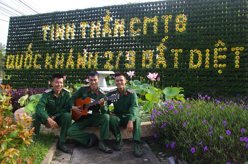 Chiến sĩ Sư đoàn 5 bên công trình chào mừng ngày Quốc khánh.