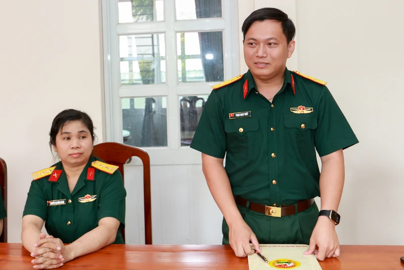 Thượng tá Lại Thế Hiền, Phó Tổng Biên tập Báo Quân khu 7 phát biểu tại buổi tuyên dương.