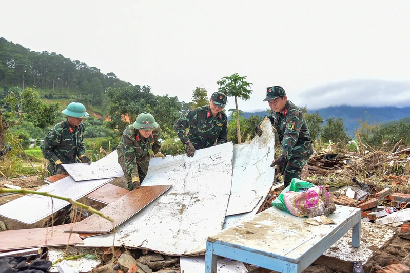 Người dân vùng lũ Lâm Đồng xúc động chia tay cán bộ, chiến sĩ LLVT Quân khu 7