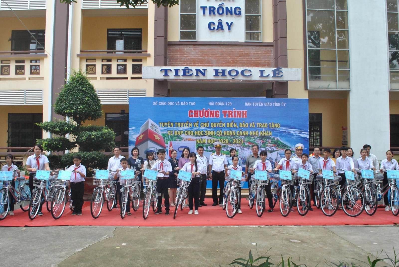 Dịp này, đoàn trao tặng 15 chiếc xe đạp cho 15 em học sinh có hoàn cảnh khó khăn, vượt khó, học giỏi của trường THPT Lê Lợi; mỗi xe trị giá 1,5 triệu đồng.