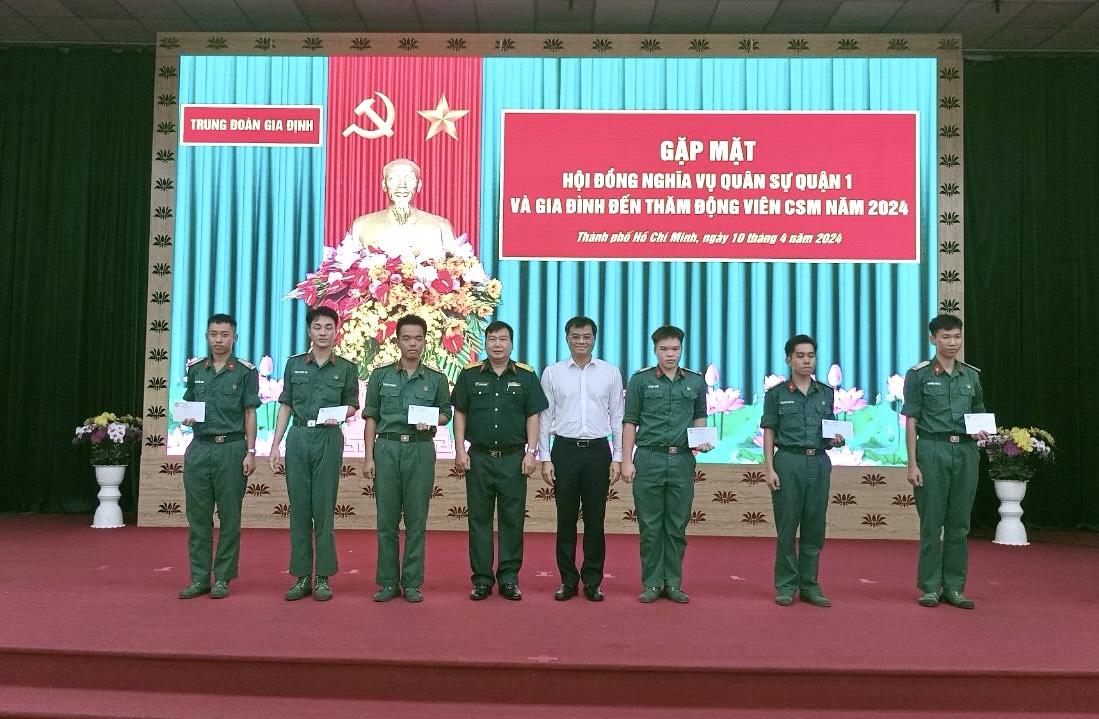 Lãnh đạo Quận 1 trao tặng quà chiến sĩ mới của Quận 1 nhập ngũ tại Trung đoàn Gia Định.