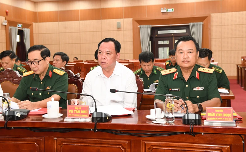 Từ phải qua: Trung tướng Trần Vinh Ngọc, Bí thư Đảng ủy, Chính ủy Quân khu; Đồng chí Võ Tấn Đức, Phó Bí thư Tỉnh ủy Đồng Nai; Đại tá Vũ Minh Đức, Trưởng phòng Kiểm tra, lãnh đạo công tác quân sự, UBKT Quân ủy Trung ương.