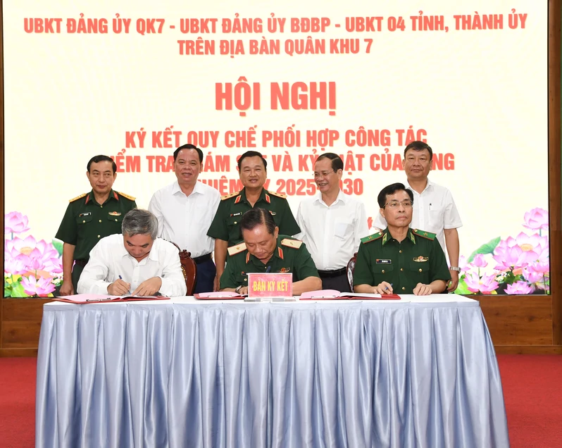 (QK7 Online) - Ngày 20/4, Ủy ban Kiểm tra (UBKT) Đảng ủy Quân khu 7 tổ chức hội nghị ký kết quy chế phối hợp công tác kiểm tra, giám sát (KTGS) và kỷ luật của Đảng với UBKT Đảng ủy Bộ đội Biên phòng và UBKT các tỉnh, thành ủy trên địa bàn Quân khu nhiệm kỳ 2025 - 2030.