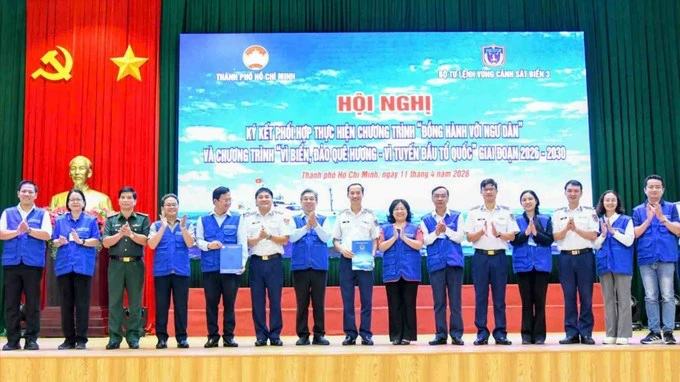 Dịp này, Ủy ban MTTQ Việt Nam TPHCM và Bộ Tư lệnh Vùng Cảnh sát biển 3 đã ký kết chương trình phối hợp giai đoạn 2026-2030 với 2 nội dung trọng tâm, gồm: chương trình “Đồng hành với ngư dân” và chương trình “Vì biển, đảo quê hương - Vì tuyến đầu Tổ quốc”.