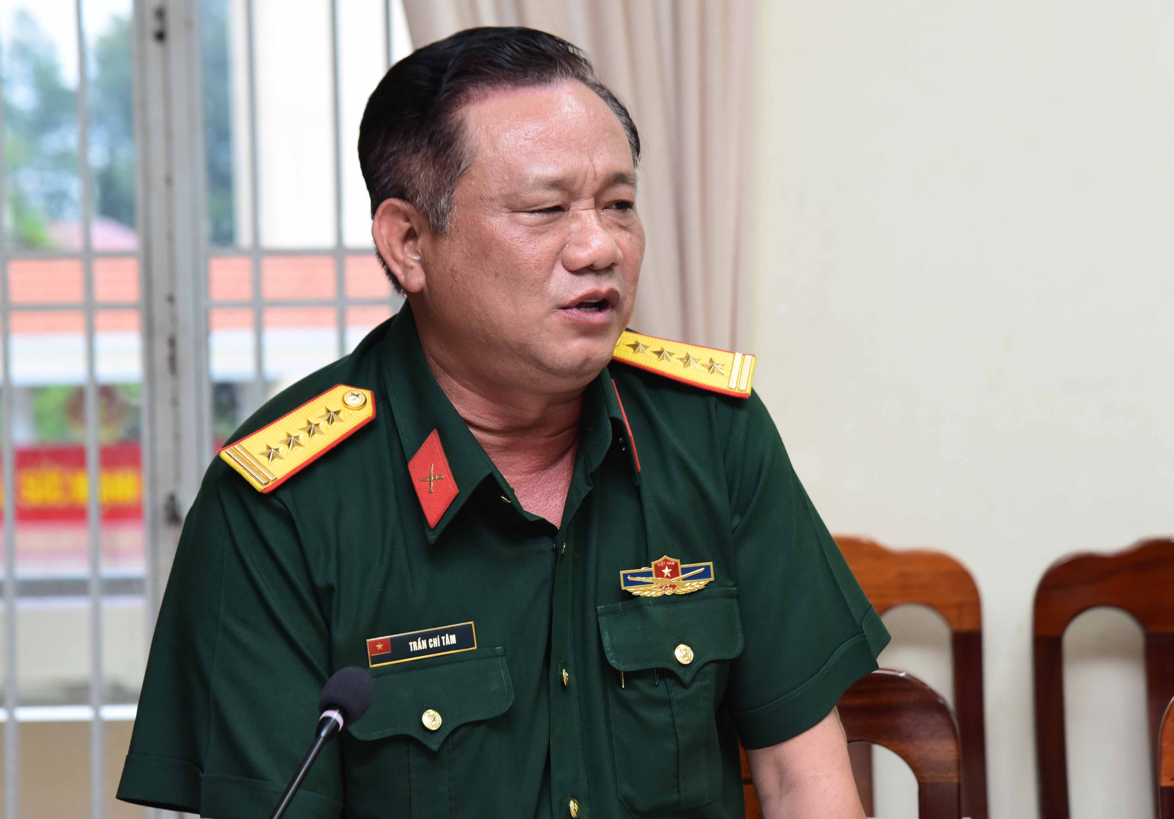 Đại tá Trần Chí Tâm, Phó Chủ nhiệm Chính trị Quân khu phát biểu tại hội nghị