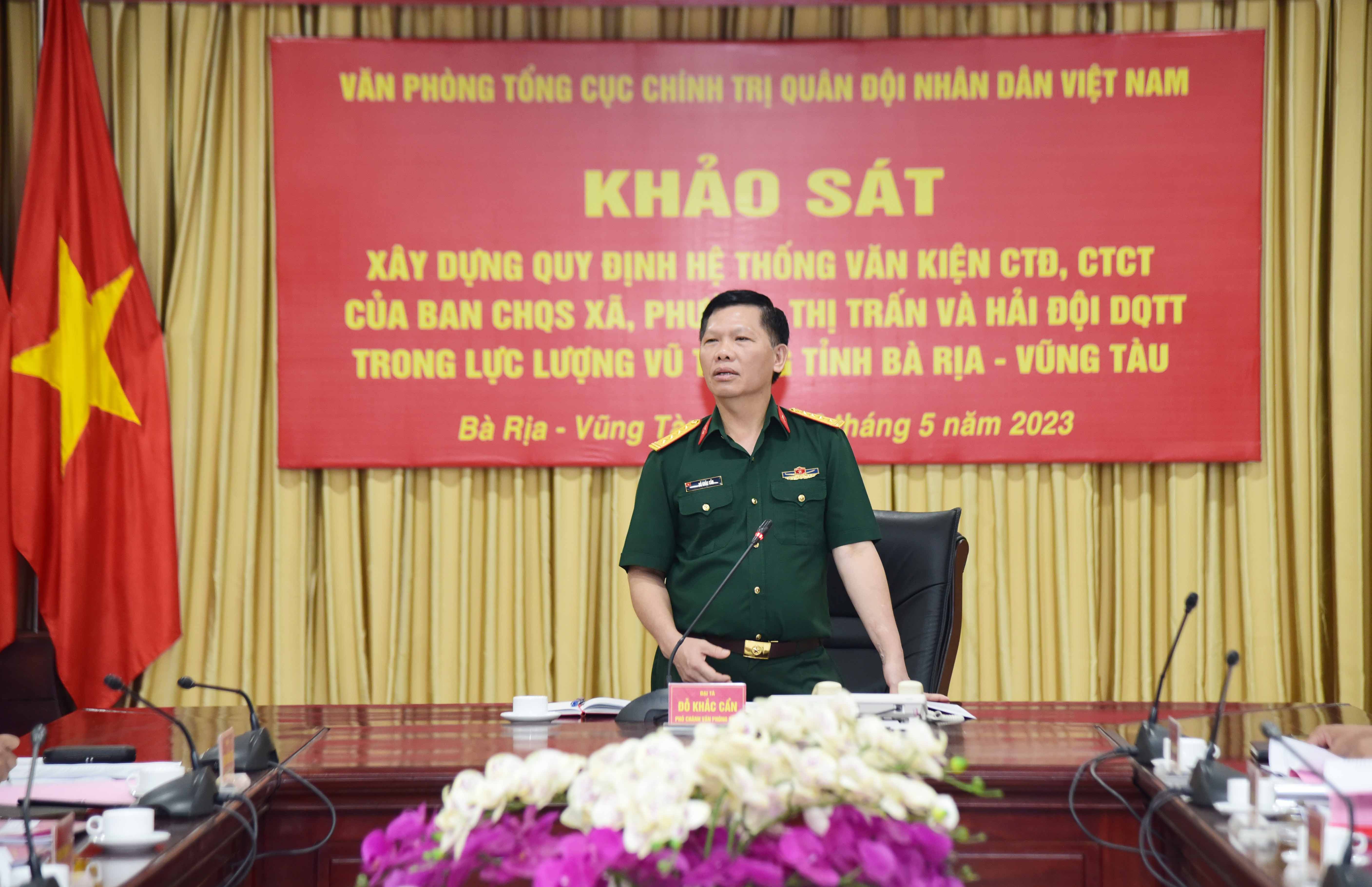 Đại tá Đỗ Khắc Cẩn, Phó Chánh văn phòng Tổng cục Chính trị trưởng đoàn khảo sát làm việc tại Bộ chỉ huy quân sự tỉnh Bà Rịa - Vũng Tàu