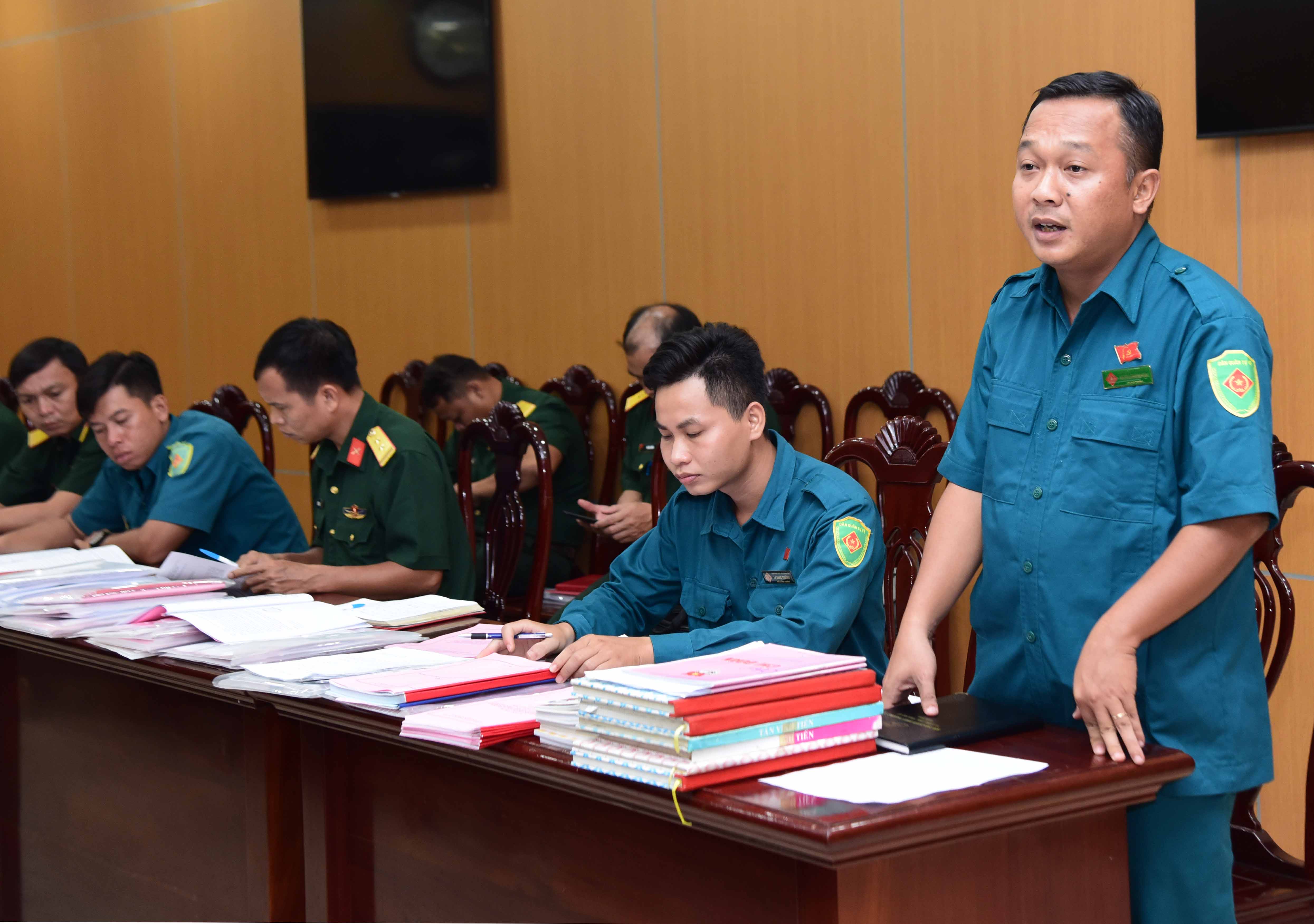 Đoàn đã khảo sát, nắm tình hình, kiểm tra văn kiện, sổ sách công tác Đảng, công tác chính trị; trao đổi trực tiếp với các đồng chí chỉ huy trưởng xã, phường, thị trấn, hải đội dân quân thường trực về hệ thống văn kiện công tác Đảng, công tác chính trị và các vấn đề liên quan .