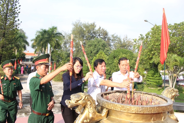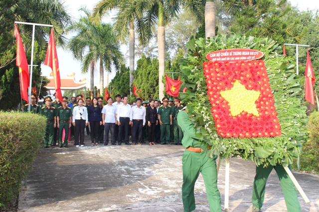 Cán bộ, chiến sĩ Trung đoàn 271 dâng hương tại tượng đài Nghĩa trang liệt sĩ huyện Đức Hòa