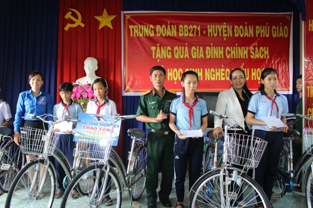 Để tri ân những tấm lòng, tình cảm mà Đảng bộ,chính quyền, nhân dân các xã đã hỗ trợ, giúp đỡ, đùm bọc cán bộ, chiến sĩ Trung đoàn những năm kháng chiến chống Mỹ, tại xã An Ninh Đông và An Ninh Tây, Trung đoàn 271 đã trao tặng 20 phần quà cho các gia đình sách, mỗi suất gồm 25kg gạo và 500 ngàn tiền mặt; trao tặng 20 chiếc xe đạp, mỗi chiếc 3 triệu đồng cho các em học sinh nghèo vượt khó học giỏi.