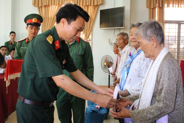 Trung tá Phạm Đắc Công, Chính ủy Trung đoàn 271 tặng quà cho các gia đình chính sách