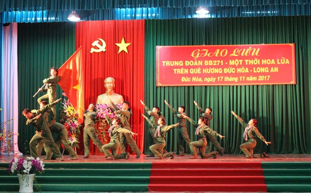 Đặc biệt, Trung đoàn đã phối hợp với huyện Đức Hòa tổ chức giao lưu văn nghệ, gặp gỡ cựu chiến binh với chủ đề “Một thời hoa lửa trên quê hương Đức Hòa – Long An”. Chương trình được dàn dựng công phu, nhiều tiết mục văn nghệ đặc sắc ca ngợi quê hương đất nước, Đảng, Bác Hồ, Quân đội…