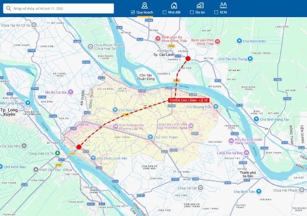 Bản đồ quy hoạch vị trí tuyến Cao Lãnh - Lộ Tẻ