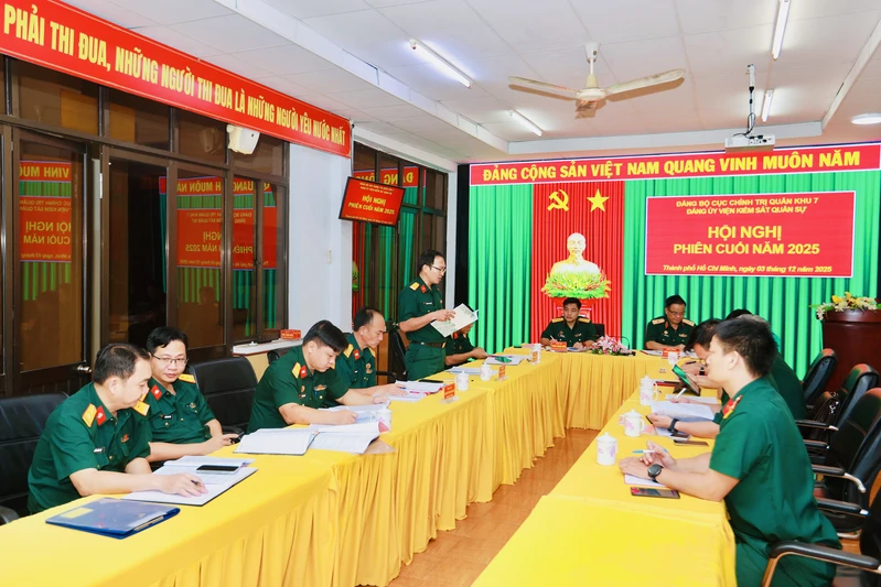Hội nghị đánh giá, năm 2025, Đảng ủy Viện Kiểm sátQuân khu 7đã lãnh đạo bám sát các kế hoạch, hướng dẫn của cấp trên và kế hoạch cấp mình, hoàn thành tốt nhiệm vụ chính trị trung tâm. Trong đó, đã kịp thời tham mưu, đề xuất với Thường vụ Đảng ủy, Bộ Tư lệnh Quân khu chỉ đạo thực hiện các quy định về hoạt động điều tra, truy tố, xét xử, thi hành án và những nội dung theo chức năng, nhiệm vụ đảm nhiệm. Tổ chức Hội thảo chuyên đề nghiệp vụ và tham dự Hội thảo khoa học các cơ quan pháp chế trong và ngoài Quân đội tổ chức; tổ chức Hội thi “Nâng cao chất lượng tranh tụng của kiểm sát viên tại phiên tòa” trong 2 cấp Viện. Công tác phổ biến giáo dục pháp luật được tiến hành thường xuyên với hơn 9.000 lượt cán bộ, chiến sĩ và Nhân dân tham gia, góp phần lan tỏa sâu rộng tinh thần thượng tôn pháp luật.