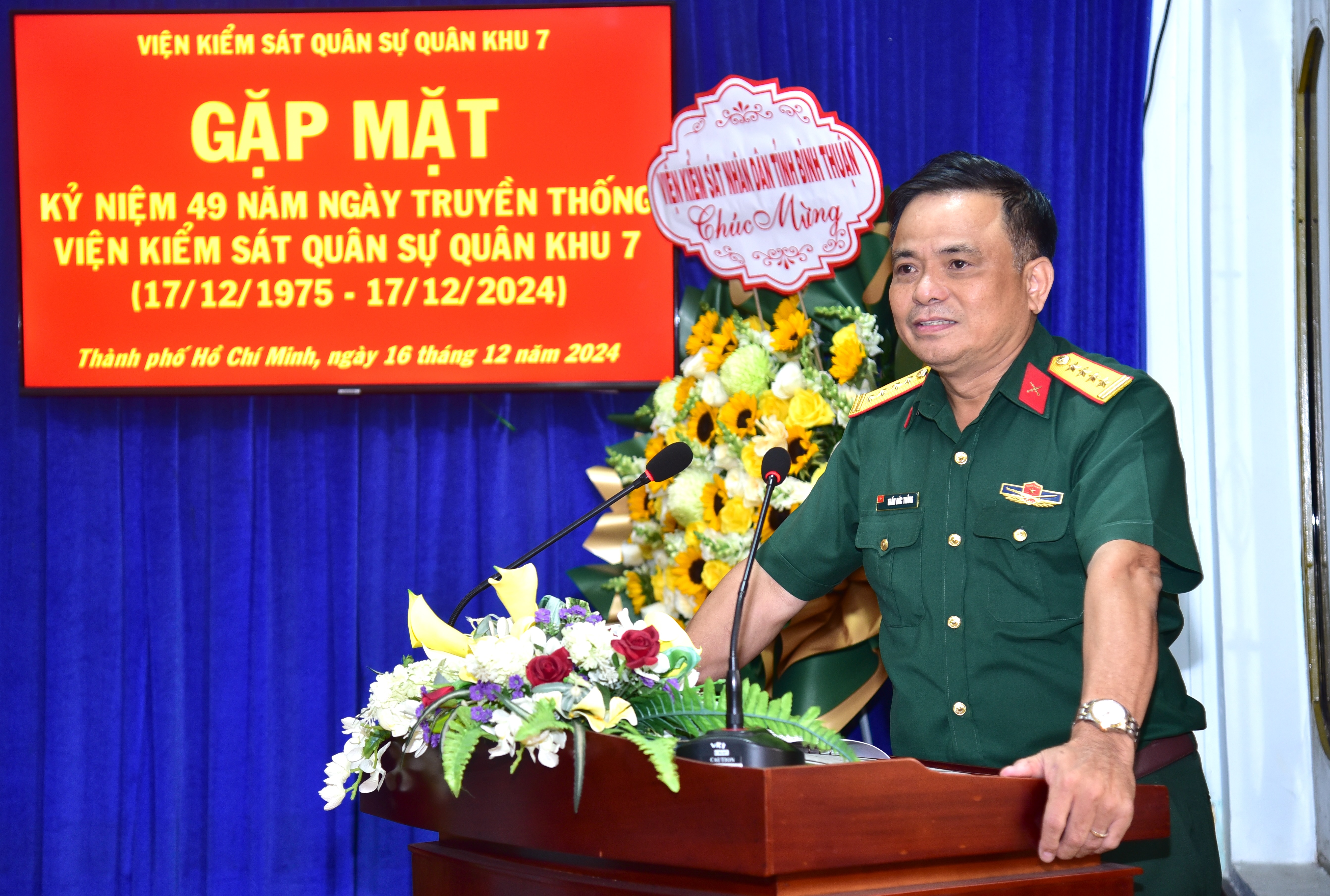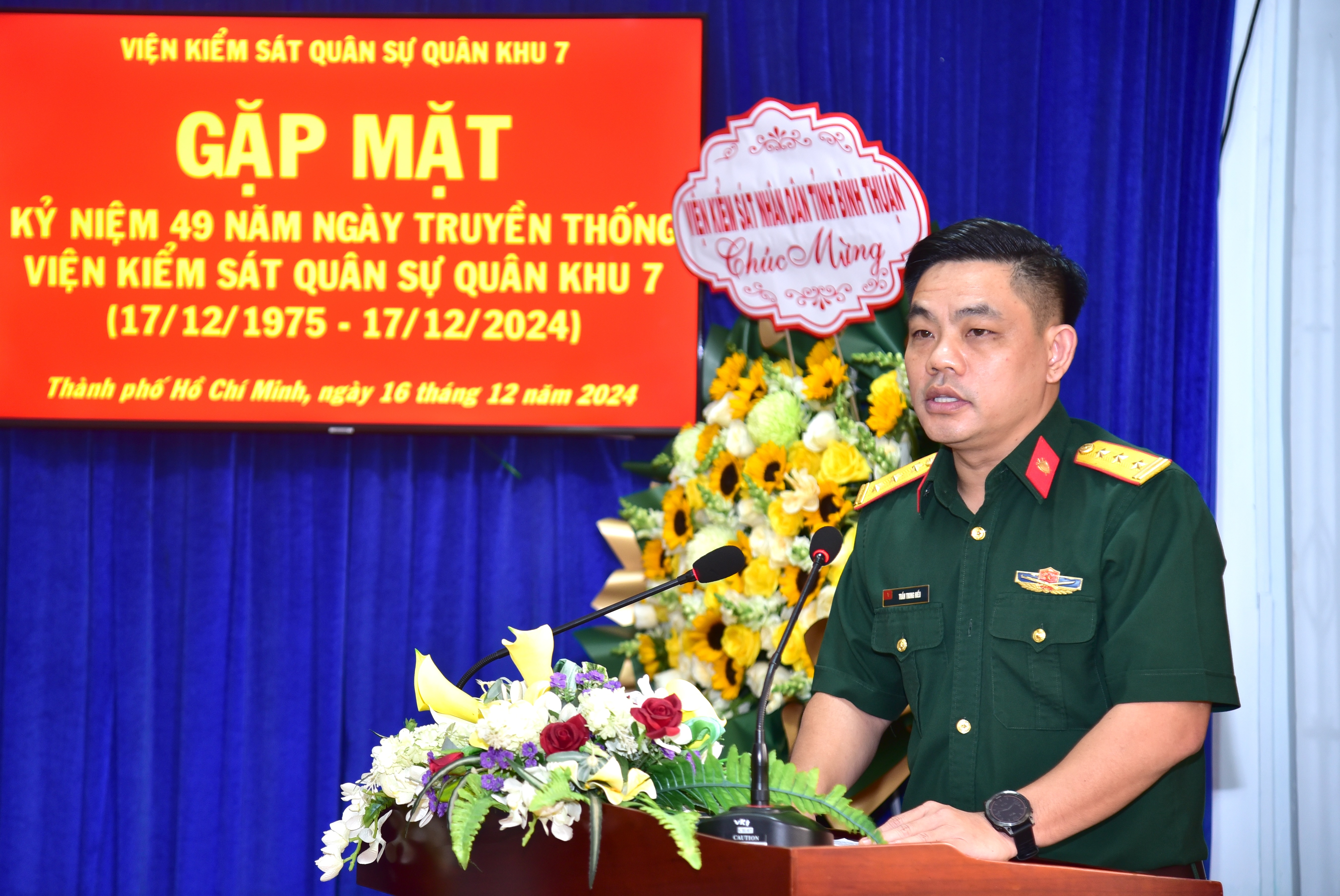 Tại buổi gặp mặt, Thượng tá Trần Trung Hiếu, Phó Viện trưởng Viện Kiểm sát Quân sự Quân khu khẳng định, trải qua 49 năm hình thành và phát triển (17/12/1975 - 17/12/2024), dưới sự chỉ đạo sâu sát về nghiệp vụ của Viện Kiểm sát Quân sự Trung ương và sự lãnh đạo chặt chẽ của Ban Thường vụ Đảng ủy, Bộ Tư lệnh Quân khu và Ban Thường vụ Đảng ủy, Ban Chủ nhiệm Cục Chính trị; Viện Kiểm sát Quân sự Quân khu 7 luôn phát huy truyền thống “Tinh thông pháp luật - Bản lĩnh, Kỷ cương - Trách nhiệm, Nêu gương - Thi đua, Quyết thắng”, luôn tăng cường củng cố tổ chức, lực lượng, chủ động phối hợp chặt chẽ với các cơ quan tư pháp trong và ngoài Quân đội, cấp ủy, chỉ huy các cơ quan đơn vị tiến hành kiểm sát điều tra, truy tố, xét xử và thi hành án đúng người, đúng tội, đúng pháp luật; độ tin cậy và uy tín của ngành kiểm sát quân sự Quân khu ngày càng nâng cao, được các cấp khen thưởng.