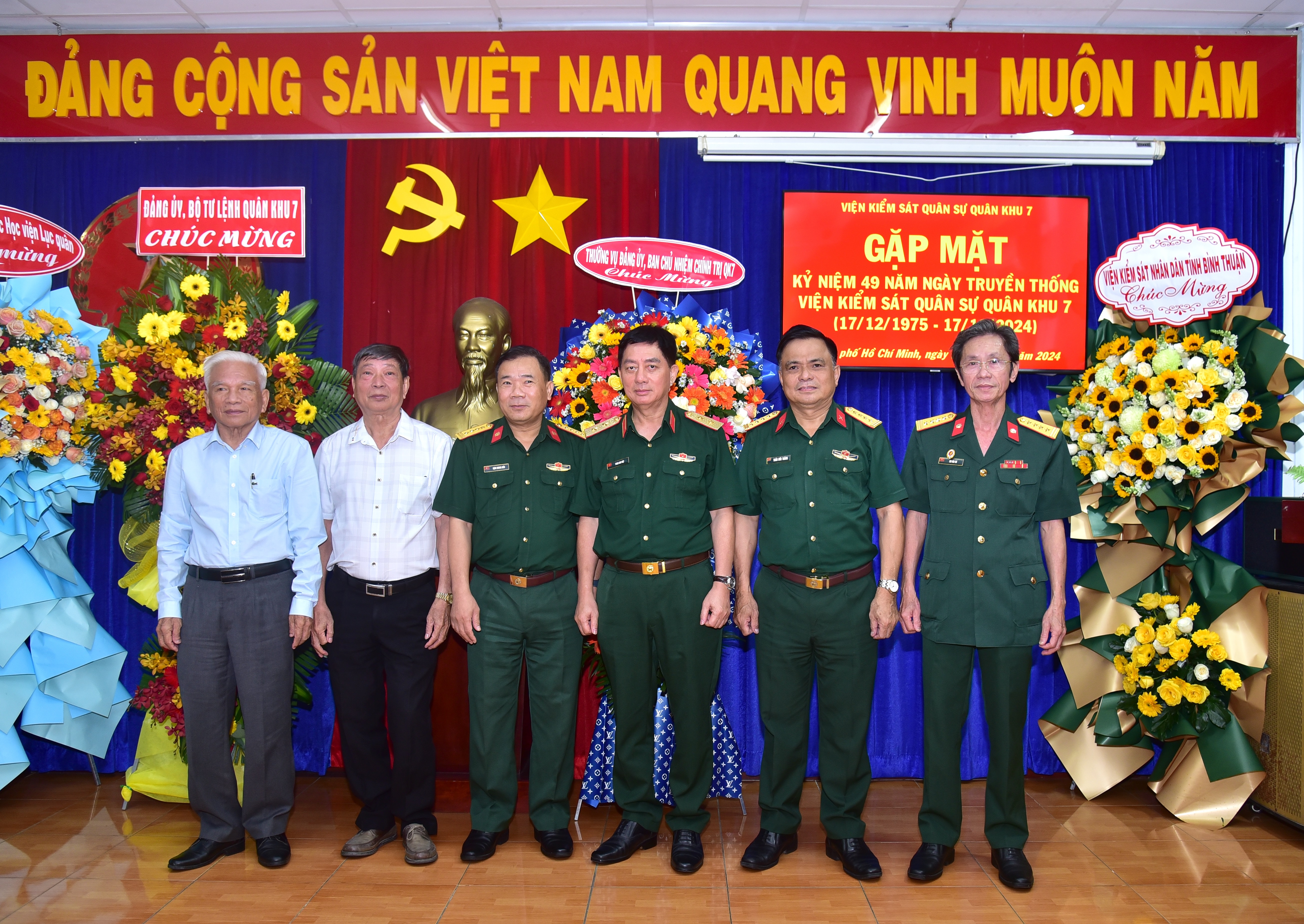(QK7 Online) – Chiều 16/12, Viện Kiểm sát Quân sự Quân khu 7 tổ chức gặp mặt kỷ niệm 49 năm ngày truyền thống (17/12/1975 - 17/12/2024). Đến dự có Trung tướng Phan Anh Việt, nguyên Phó Giám đốc Học viện Quốc phòng; Đại tá Trần Đức Thắng, Phó Chủ nhiệm Chính trị Quân khu; Đại tá Đặng Quang Hiếu, Viện trưởng Viện Kiểm sát Quân sự Quân khu; các đồng chí nguyên lãnh đạo, nguyên Trưởng ban, nguyên Kiểm sát viên, cán bộ nhân viên hai cấp Viện qua các thời kỳ.