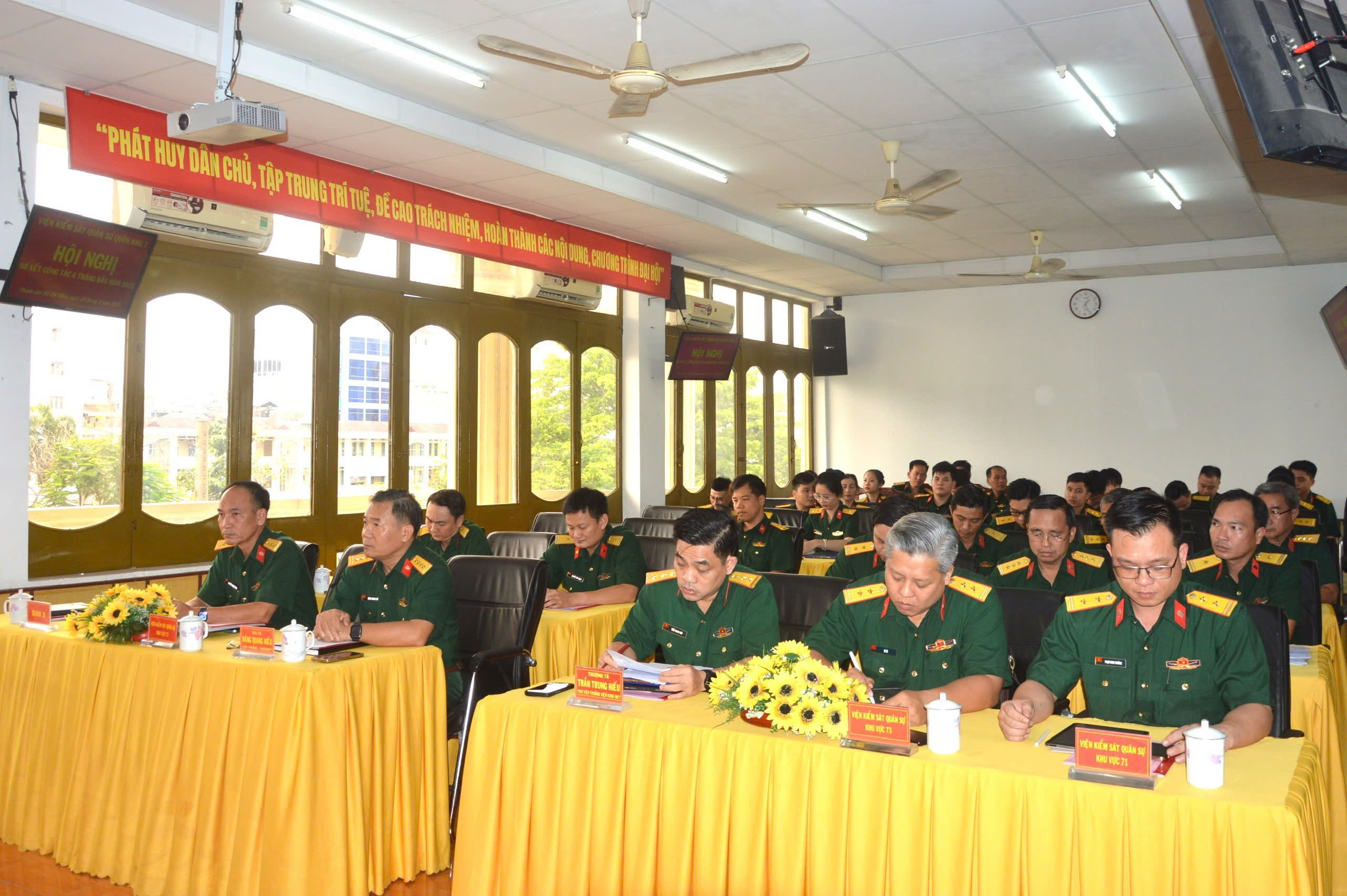 Phát biểu kết luận hội nghị, Đại tá Đặng Quang Hiếu, Viện trưởng Viện KSQS Quân khu yêu cầu lãnh đạo Viện KSQS các Khu vực và cán bộ, Kiểm tra viên, Kiểm sát viên toàn Ngành tiếp tục phát huy những kết quả đạt được, khắc phục những tồn tại, hạn chế đã chỉ ra. Tập trung nghiên cứu, nắm chắc các quy định của pháp luật và hướng dẫn nghiệp vụ của ngành, nhất là nghiêm túc quán triệt, chấp hành tốt các nội dung do Viện trưởng Viện Kiểm sát Nhân dân tối cao, Viện trưởng Viện KSQS Trung ương đã kết luận trong Hội nghị sơ kết 6 tháng đầu năm và triển khai một số nhiệm vụ trọng tâm công tác 6 tháng cuối năm 2025 của Ngành Kiểm sát Nhân dân, Ngành Kiểm sát quân sự. Đồng thời chú trọng giữ vững an ninh chính trị nội bộ, xây dựng tinh thần đoàn kết, thống nhất trong hai cấp Viện, góp phần xây dựng các chi bộ, Đảng bộ trong sạch vững mạnh, đơn vị vững mạnh toàn diện “mẫu mực, tiêu biểu”, thực hiện thành công Đại hội Đảng bộ sắp tới.