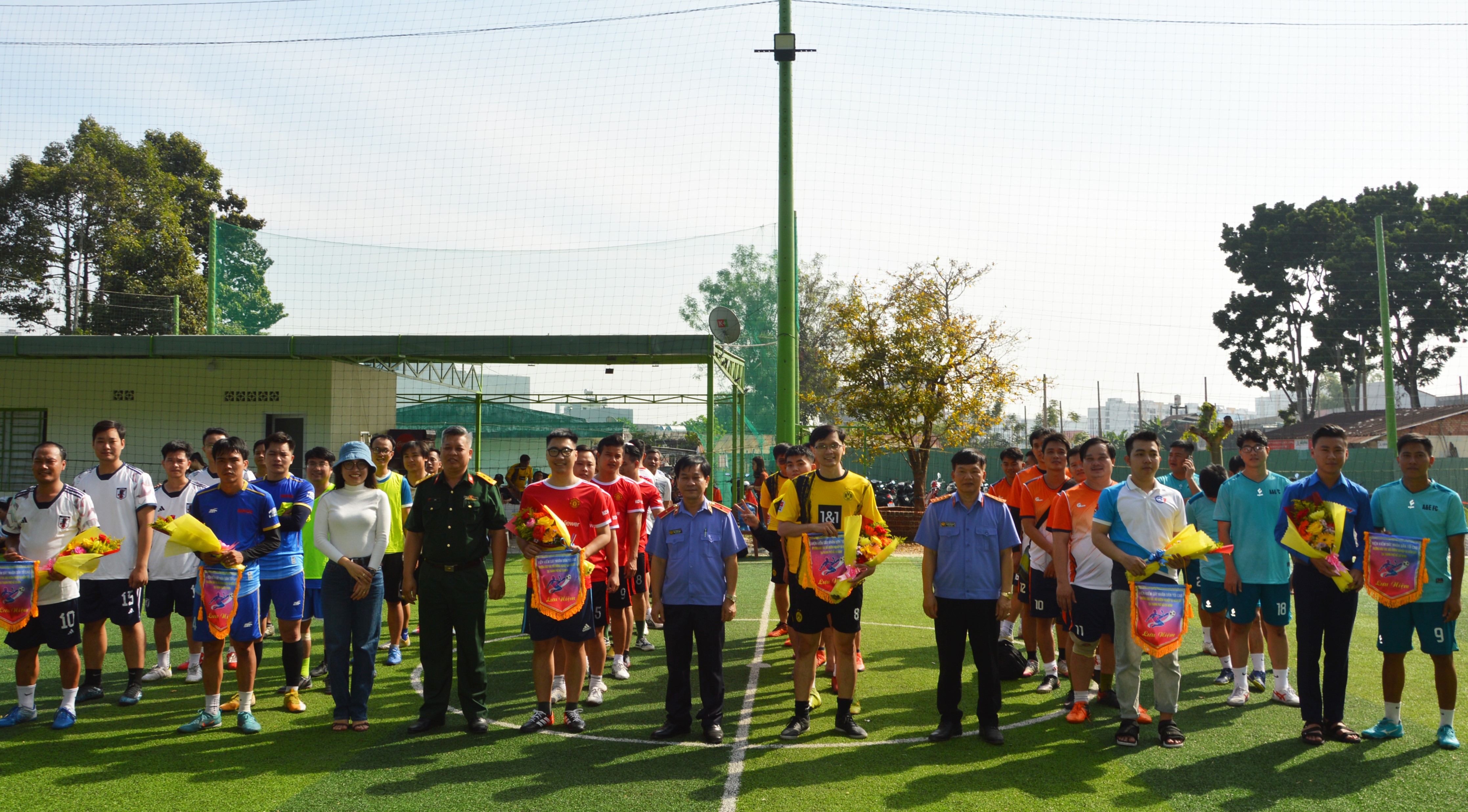 Đội bóng Viện Kiểm sát Quân sự Quân khu trước giờ thi đấu.