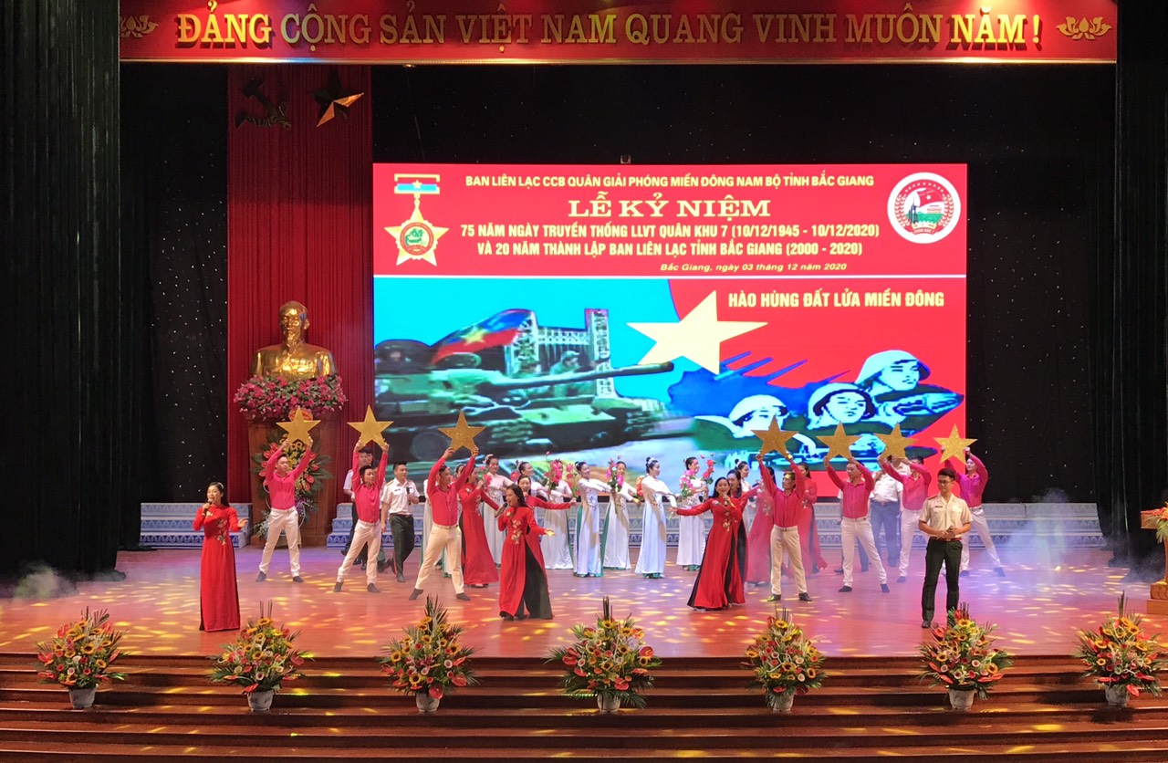 (QK7 Online) - Ngày 3/12, tại Bắc Giang, Ban liên lạc Cựu chiến binh Quân giải phóng miền Đông Nam bộ tỉnh Bắc Giang tổ chức Lễ kỷ niệm 75 năm Ngày Truyền thống LLVT Quân khu 7 (10-12-1945 / 10-12-2020) và 20 năm thành lập Ban liên lạc tỉnh Bắc Giang (2000-2020).