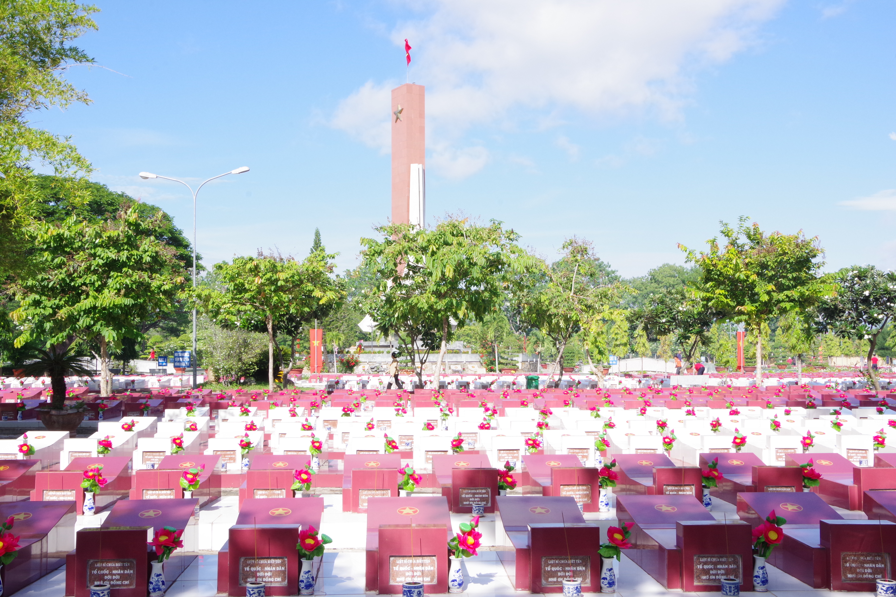 Nghĩa trang liệt sĩ tỉnh Bình Thuận sau khi thay hoa mới.