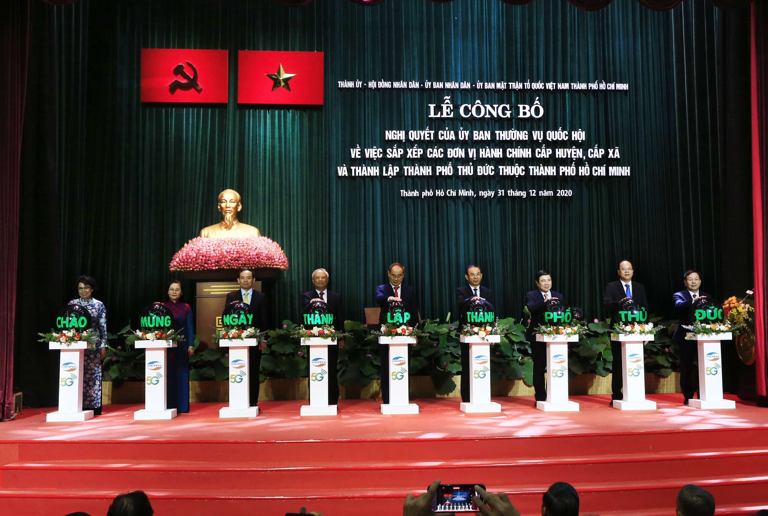 Đồng chí Nguyễn Thiện Nhân, Ủy viên Bộ Chính trị, Trưởng đoàn Đại biểu Quốc hội Thành phố Hồ Chí Minh; Đồng chí Nguyễn Văn Nên, Bí thư Trung ương Đảng, Bí thư Thành ủy Thành phố Hồ Chí Minh; Đồng chí Uông Chu Lưu, Ủy viên Trung ương Đảng, Phó Chủ tịch Quốc hội nước Cộng hòa xã hội chủ nghĩa Việt Nam; cùng các vị lãnh đạo Thành ủy, UBND thành phố Hồ Chí Minh và Thiếu tướng Lê Đăng Dũng- Quyền Chủ tịch kiêm Tổng Giám đốc Tập đoàn Công nghiệp- Viễn thông Quân đội (Viettel) đã bấm nút chính thức khai trương mạng 5G Viettel tại thành phố Thủ Đức.