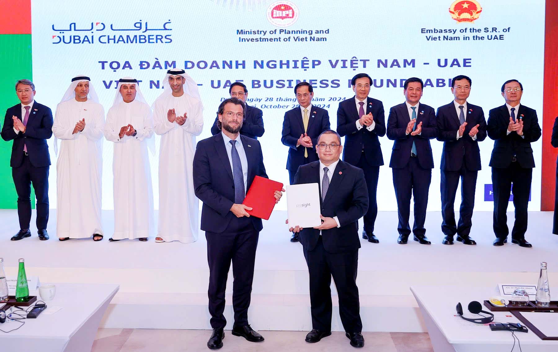 Lễ ký kết diễn ra tại thành phố Dubai trong khuôn khổ buổi làm việc của Thủ tướng Phạm Minh Chính với doanh nghiệp hai nước.