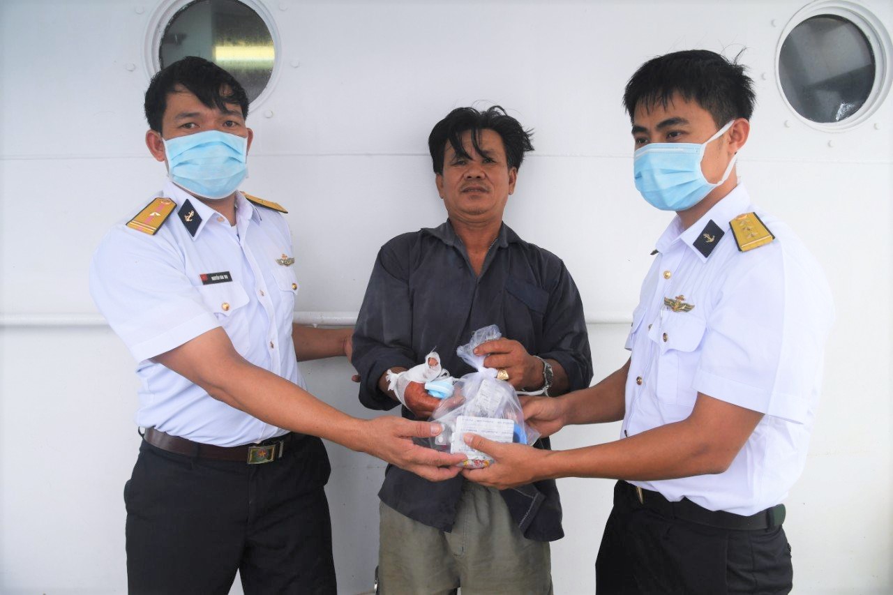 Chiều cùng ngày, vào lúc 15 giờ, tàu 263 thuộc Vùng 2 Hải quân nhận được tín hiệu xin cấp cứu ngư dân từ tàu cá BV 92528 TS do ông Nguyễn Văn Miền, sinh năm 1986 ở xã Phước Tỉnh, huyện Long Điền, tỉnh Bà Rịa - Vũng Tàu làm thuyền trưởng, ông Nguyễn Tấn Ngọc, sinh năm 1977 ở ấp Phước Tân, xã Phước Tỉnh, huyện Long Điền, tỉnh Bà Rịa - Vũng Tàu là chủ tàu. Sau khi tiếp cận tàu cá, tổ quân y tàu 263 đã tiến hành các biện pháp sơ cứu cho bệnh nhân Hà Quang Phúc, sinh năm 1983, ở phường 5, TP Vũng Tàu, tỉnh Bà Rịa - Vũng Tàu, với vết thương dập nát hộ khẩu tay phải 5cm do bị cuốn vào dây kéo lưới. Sau khi băng bó, tiêm kháng sinh, tổ quân y tàu 263 đã hướng dẫn tàu cá nhanh chóng đưa bệnh nhân về bờ để tiếp tục điều trị.