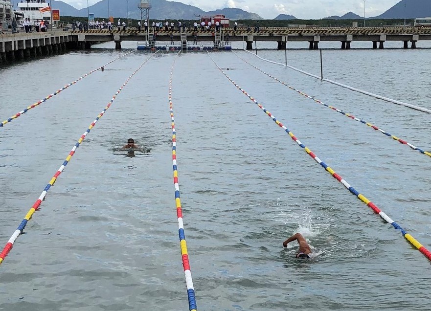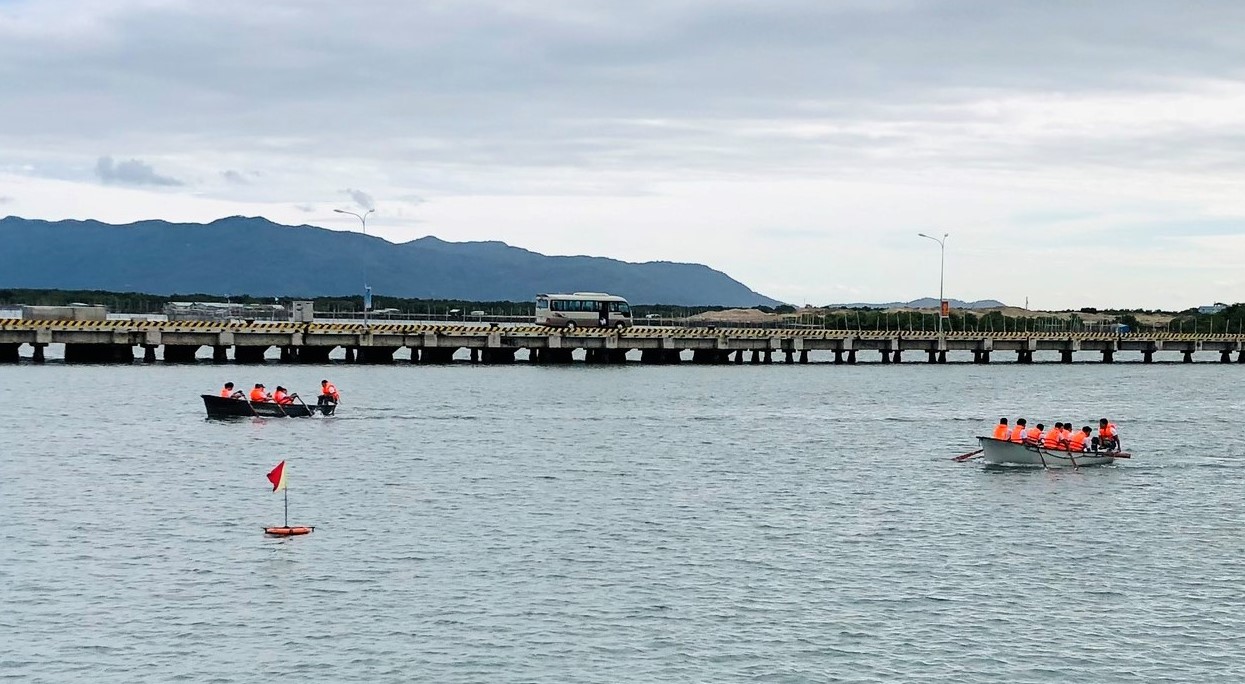 Các đội xuồng tranh tài trong môn thi đặc chủng Hải quân.