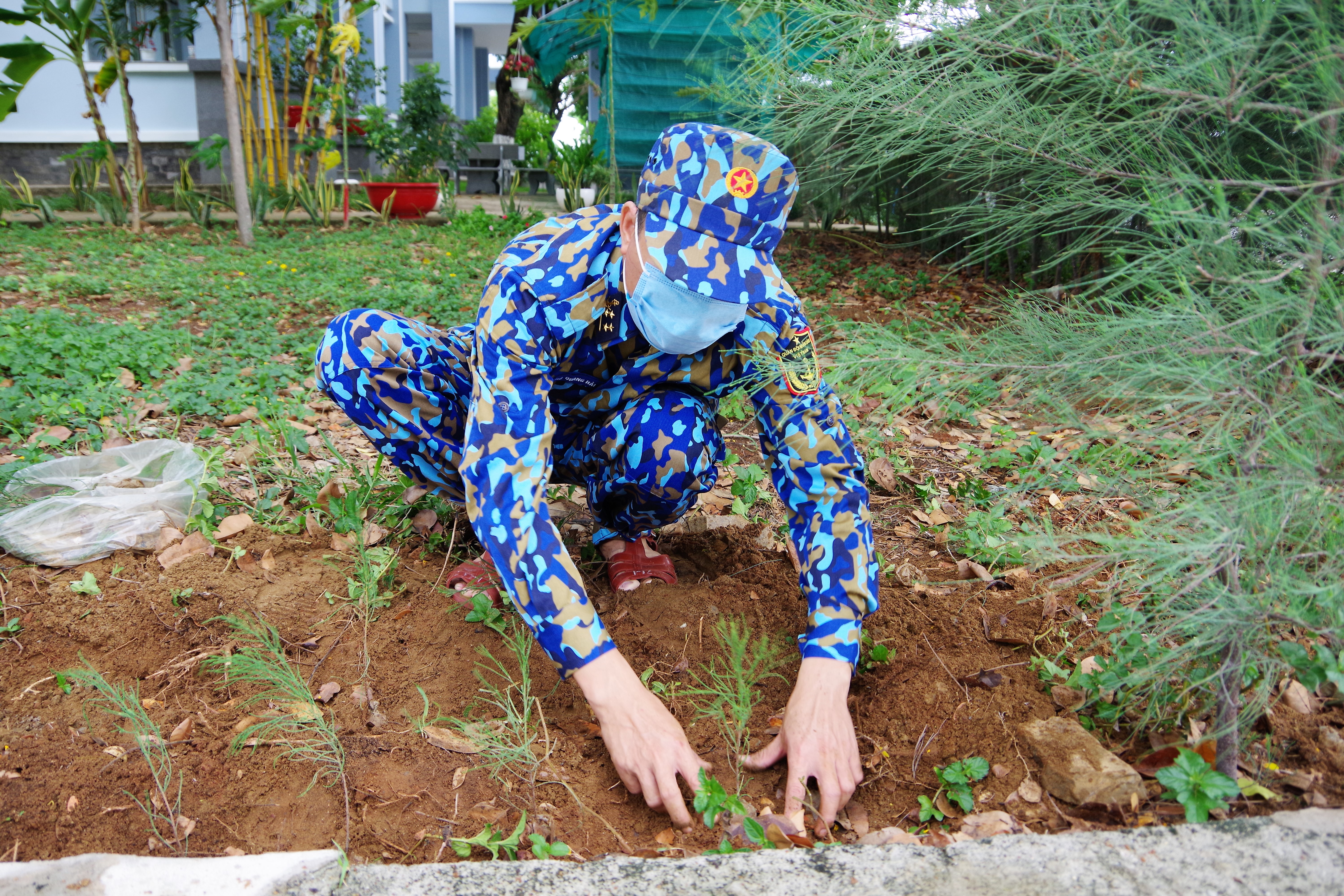 Ngay sau khi tiếp nhận cây xanh về đơn vị, các cán bộ, chiến sĩ tổ chức trồng 17.000 cây phi lao và hơn 400 cây hoa chuông vàng tại khuôn viên khu vực các đơn vị đóng quân trong căn cứ Hải quân Long Sơn.