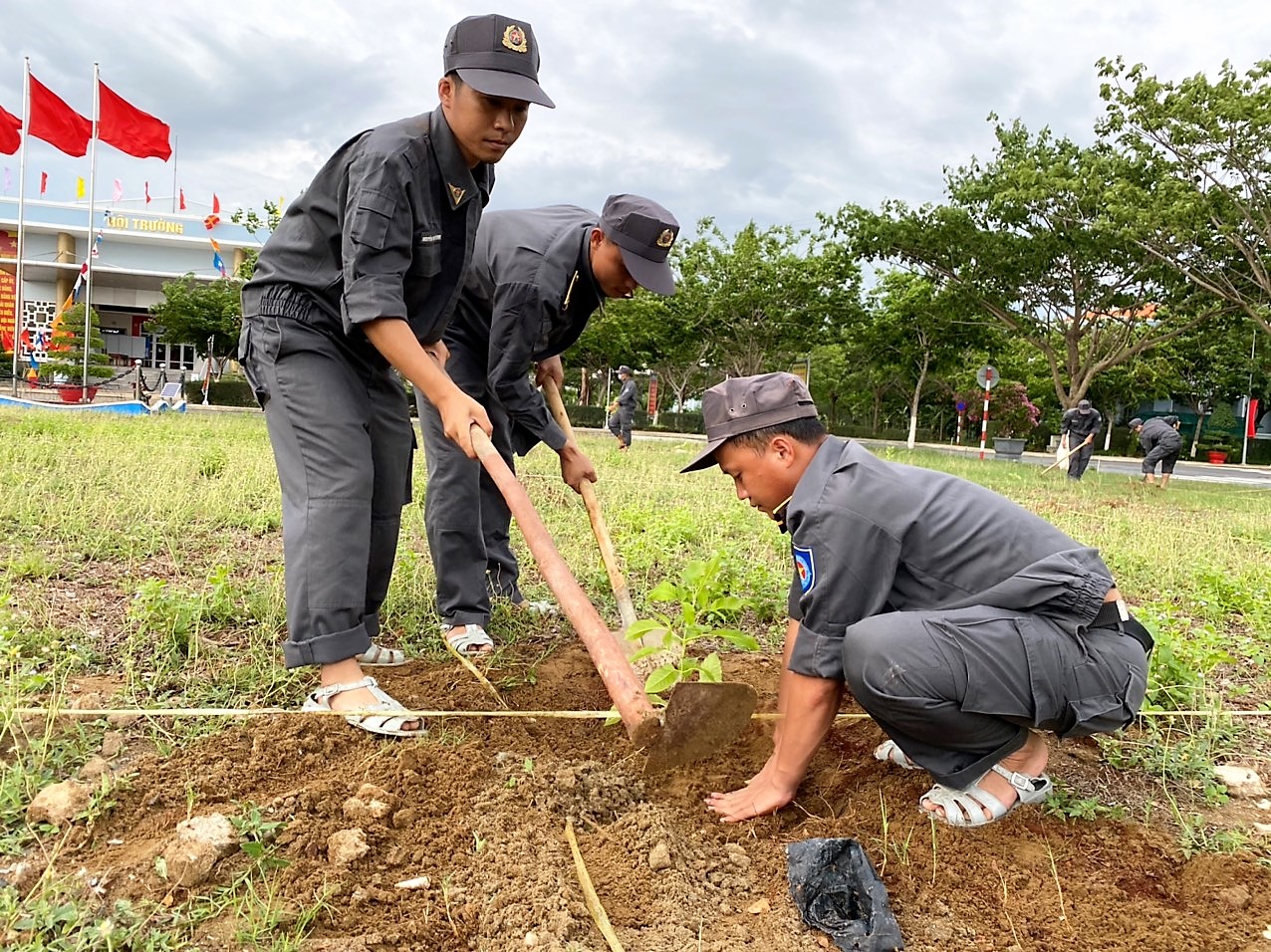 Tham dự buổi trồng cây xanh có hơn 150 cán bộ, chiến sĩ của các đơn vị khu vực Căn cứ Long Sơn.