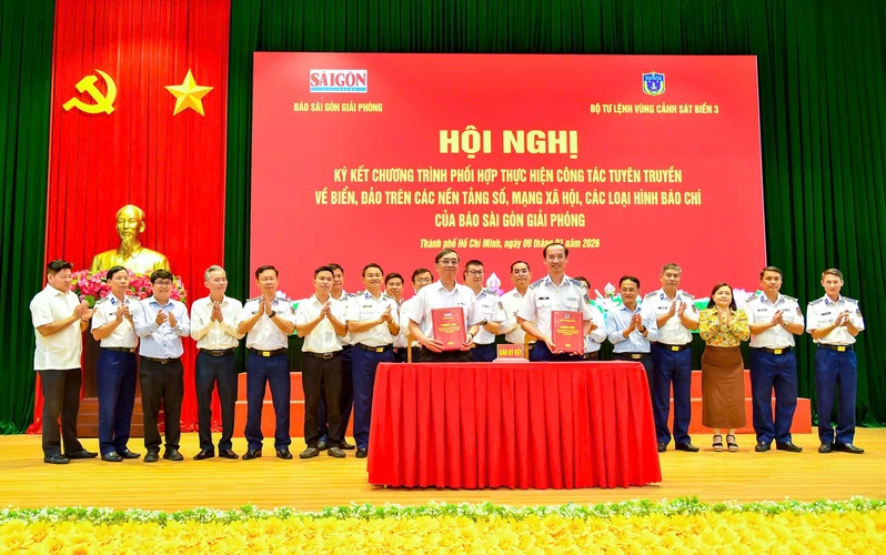 Bộ Tư lệnh Vùng Cảnh sát biển 3 và Báo Sài Gòn Giải Phóng ký kết chương trình phối hợp tuyên truyền.