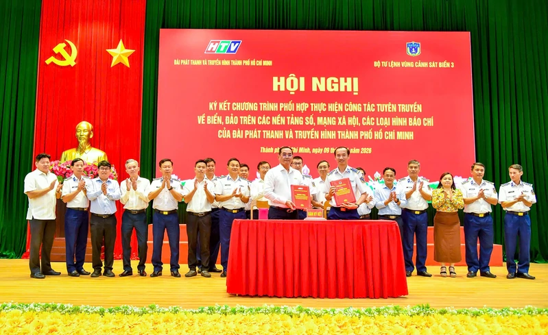(QK7 Online) - Ngày 9/1, Bộ Tư lệnh Vùng Cảnh sát biển 3 phối hợp với Ban Tuyên giáo và Dân vận Thành ủy Thành phố Hồ Chí Minh, Báo Sài Gòn Giải Phóng, Đài Phát thanh và Truyền hình Thành phố Hồ Chí Minh tổ chức ký kết chương trình phối hợp thực hiện công tác dân vận “Cảnh sát biển đồng hành với ngư dân” giai đoạn 2026 - 2030 và tuyên truyền về biển đảo trên các nền tảng số, mạng xã hội, các loại hình báo chí.