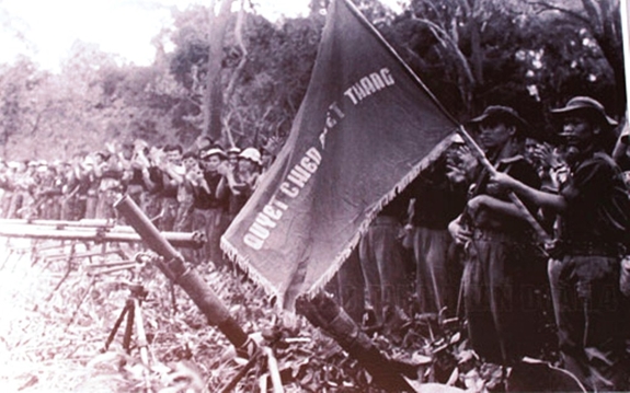 Cán bộ, chiến sĩ Sư đoàn 9 tham gia Chiến dịch Bàu Bàng-Dầu Tiếng trong Lễ tuyên thệ diệt quân Mỹ. Ảnh tư liệu