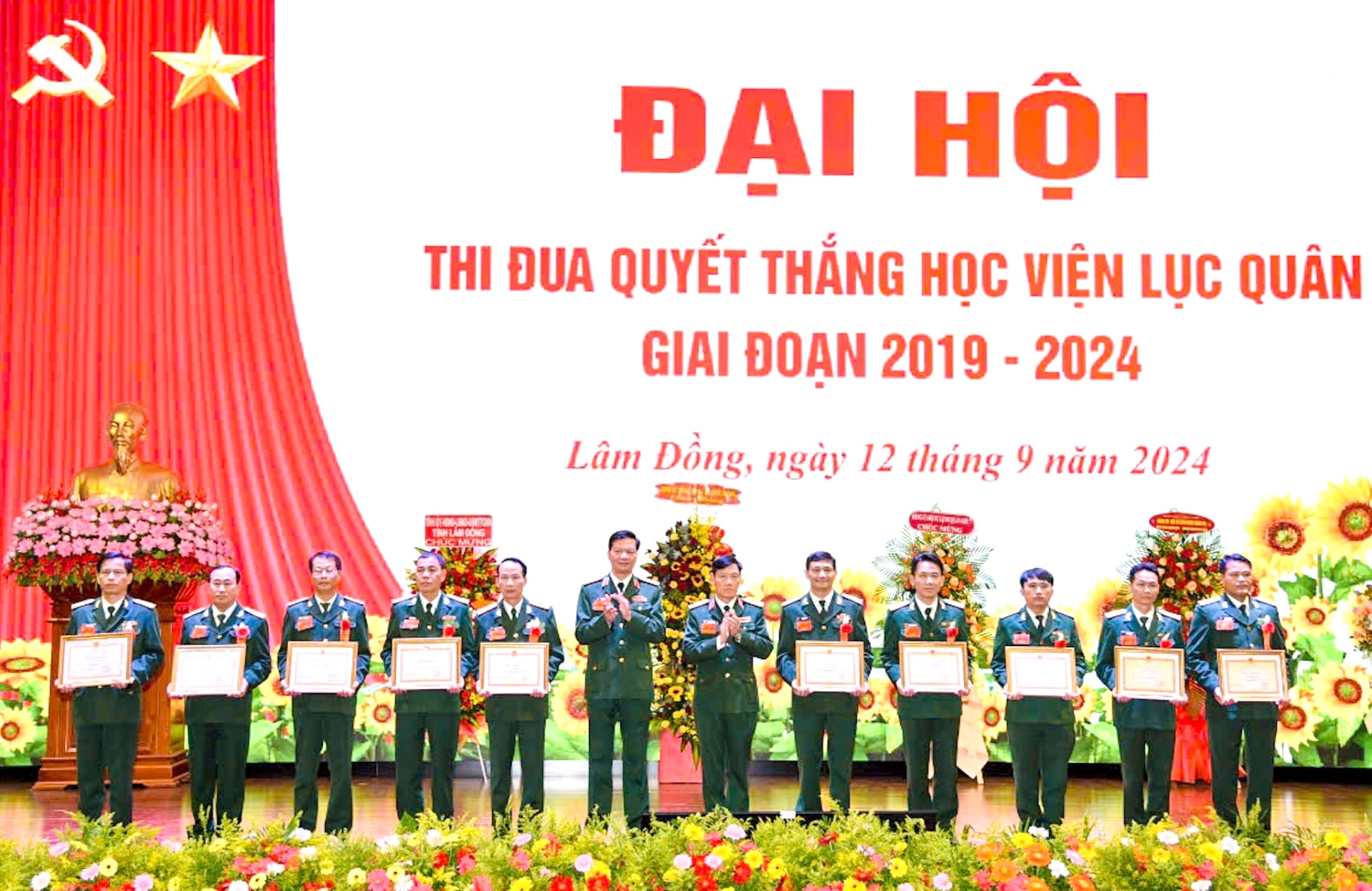 Ban Giám đốc Học viện Lục quân tặng bằng khen các điển hình tiên tiến, giai đoạn 2019-2024. Ảnh Vũ Đông.