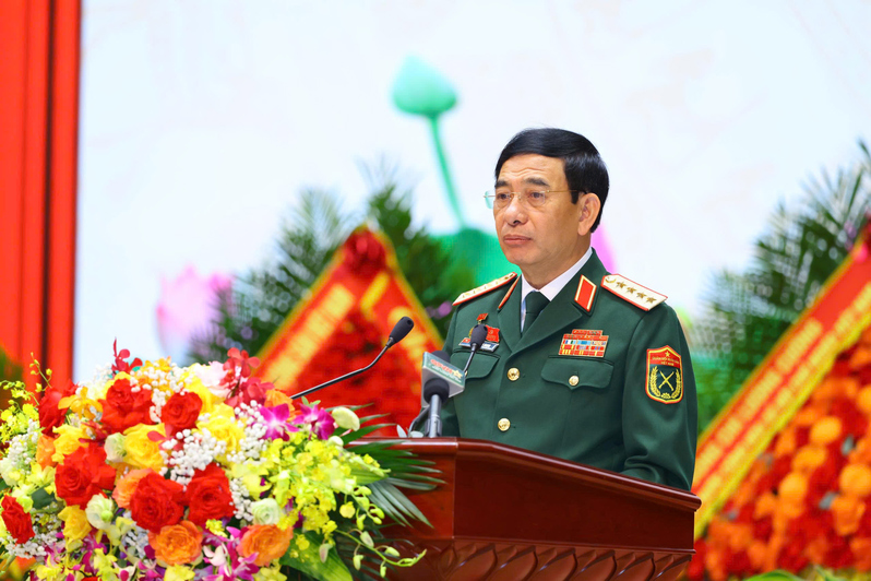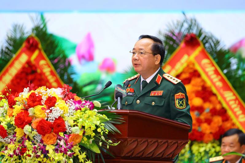 Đại tướng Phan Văn Giang, Ủy viên Bộ Chính trị, Phó Bí thư Quân ủy Trung ương, Bộ trưởng Bộ Quốc phòng phát biểu khai mạc Đại hội.