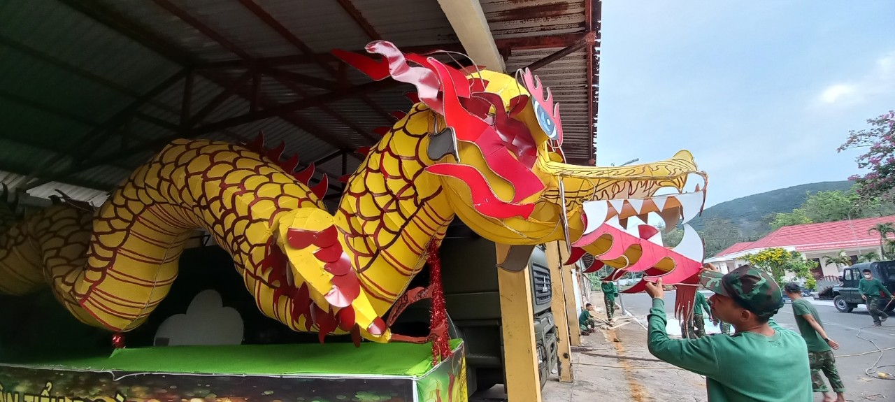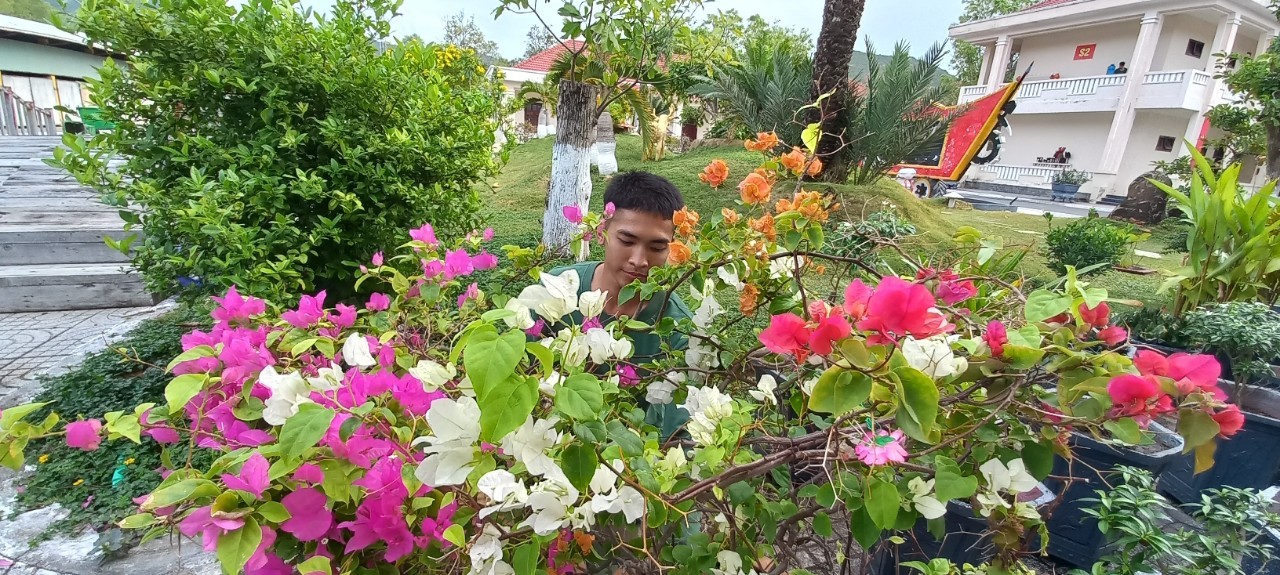 Chiến sĩ Ban CHQS huyện Côn Đảo chăm sóc cây kiểng chuẩn bị tết Giáp Thìn.