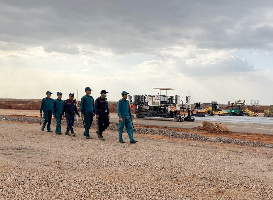Dân quân huyện Long Thành phối hợp tuần tra, đảm bảo an ninh trật tự công trường xây dựng sân bay Long Thành.
