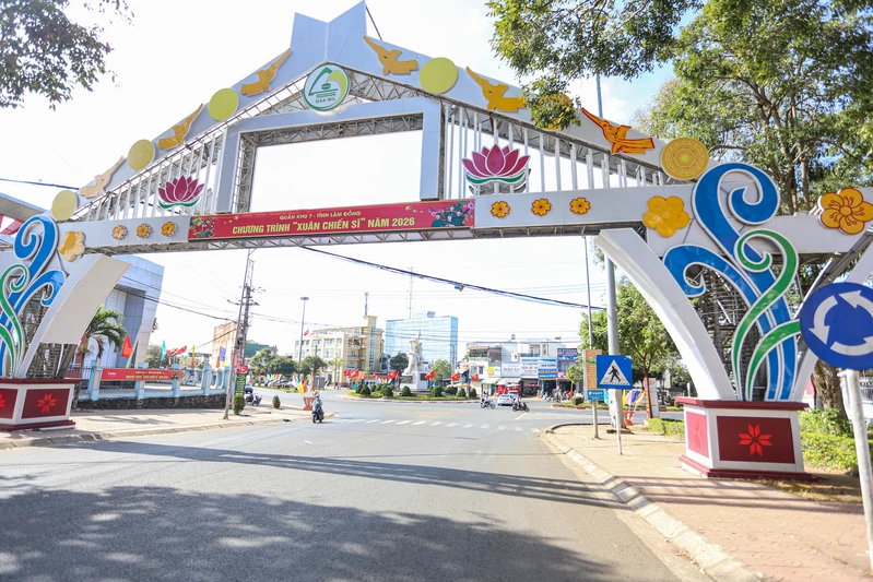 Các pano, băng rôn tuyên truyền Chương trình “Xuân Chiến sĩ” năm 2026 được trang trí trên nhiều tuyến đường tỉnh Lâm Đồng.