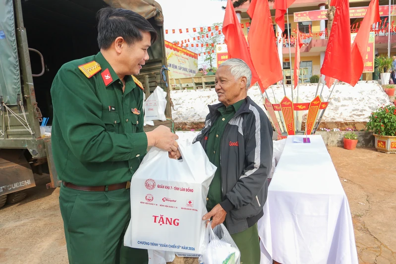 (QK7 Online) – Những hoạt động đầu tiên trong chuỗi chương trình “Xuân Chiến sĩ” năm 2026 đã được LLVT Quân khu 7 triển khai sôi nổi tại tỉnh Lâm Đồng. Hàng trăm lượt Nhân dân được thăm khám, tư vấn sức khỏe; nhiều người có công với cách mạng, hộ gia đình có hoàn cảnh khó khăn và các đơn vị lực lượng vũ trang đang đóng quân, làm nhiệm vụ trên tuyến biên giới được trao tặng quà Tết.