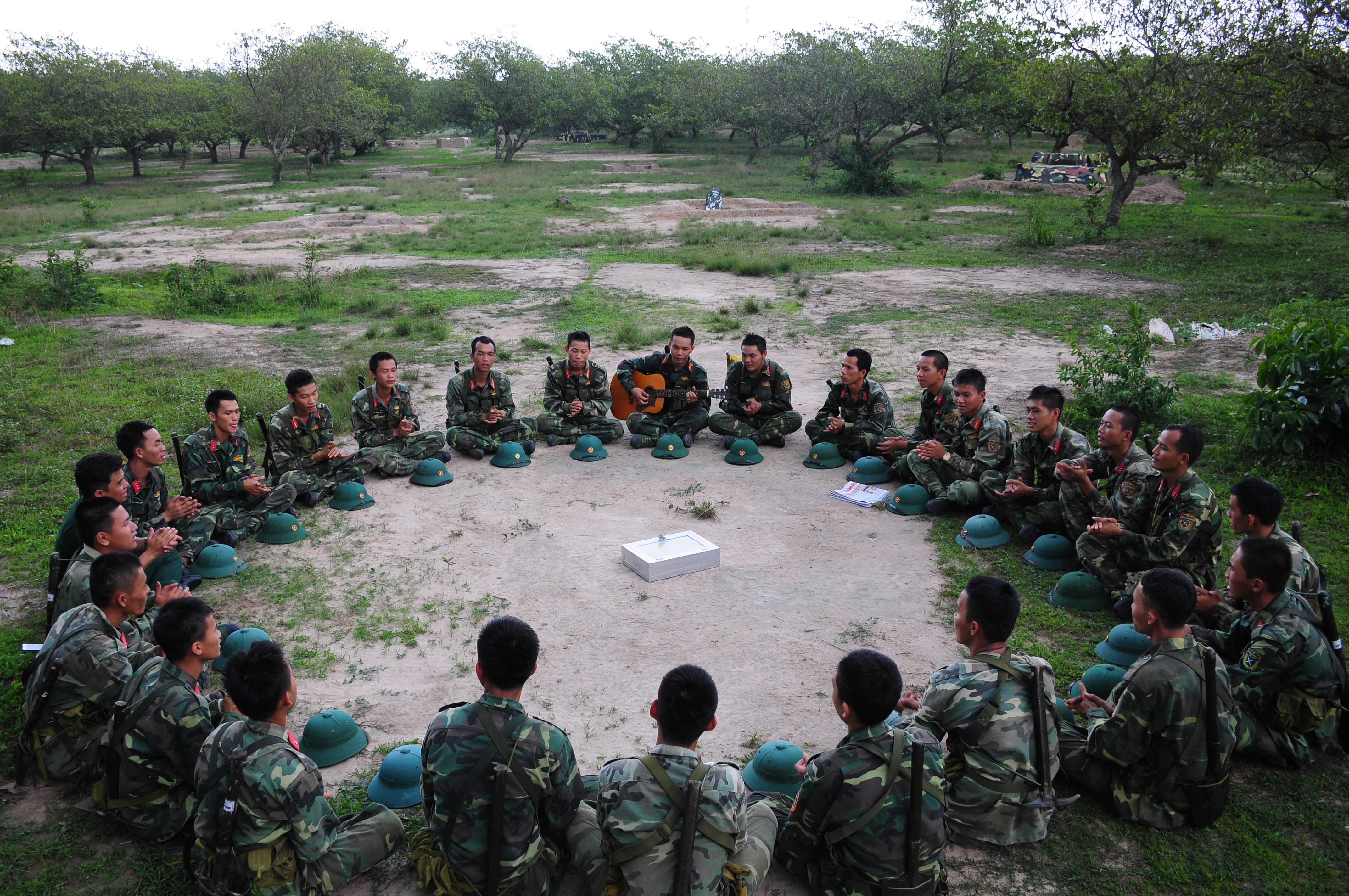Giờ giải lao  trên thao trường của cán bộ, chiến sĩ Tiểu đoàn 7, Trung đoàn 271.
