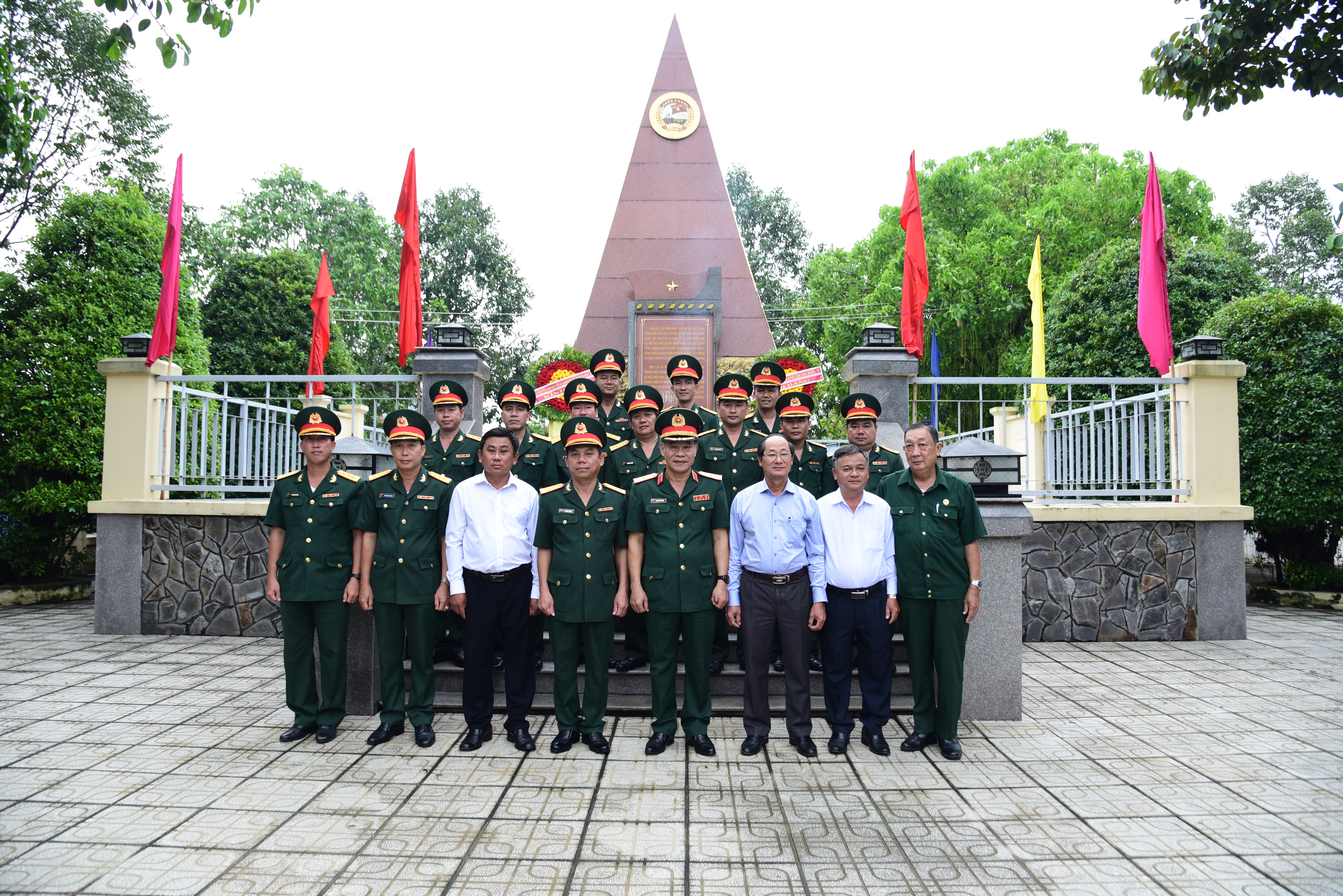 Thiếu tướng Hoàng Đình Chung, Chủ nhiệm Chính trị Quân khu và đoàn cán bộ Quân khu dâng hương tại Bia truyền thống LLVT Quân khu (xã Bình Hòa Nam, huyện Đức Huệ, tỉnh Long An)