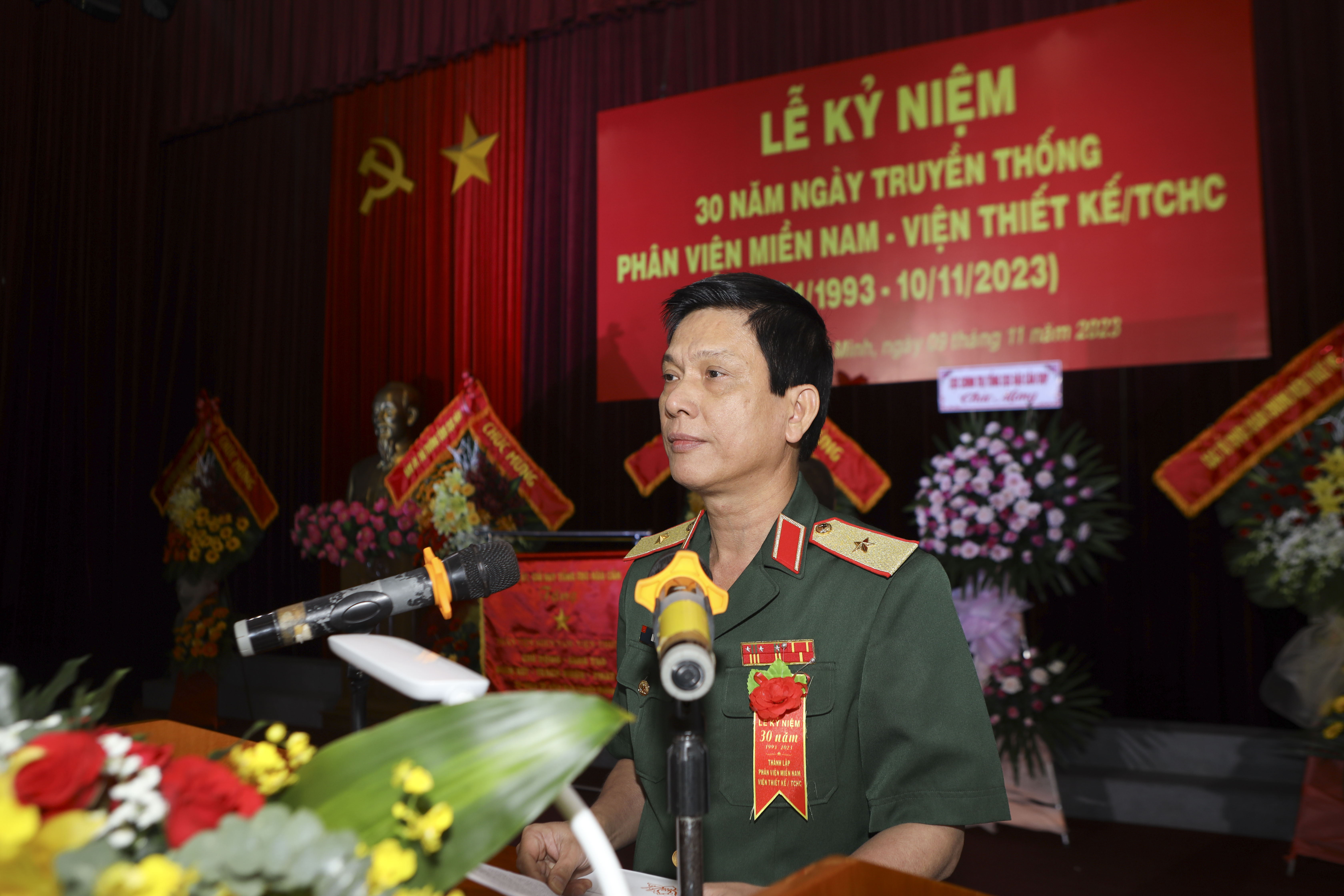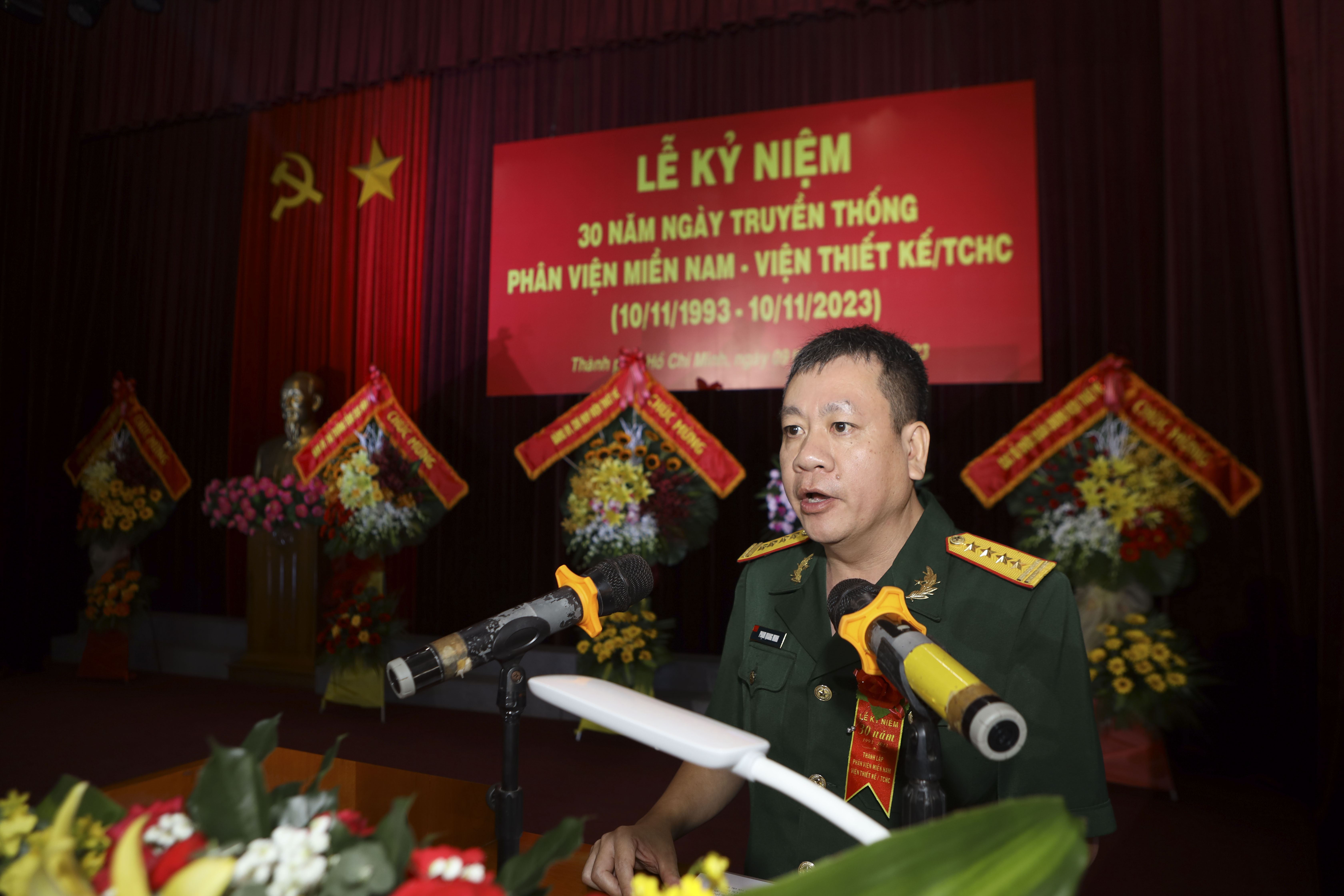 Thay mặt Đảng uỷ, Ban Giám đốc Phân viện miền Nam, Đại tá Phạm Quang Minh, Giám đốc Phân viện Miền Nam đọc diễn văn kỷ niệm: “Ngày 14/10/1993, Chủ nhiệm Tổng cục Hậu cần đã ký Quyết định số 166 về biên chế tổ chức của Công ty Khảo sát thiết kế và Tư vấn xây dựng, đến ngày 08/11/1993, ra Quyết định số 273 về việc cho phép Công ty được mở chi nhánh tại Thành phố Hồ Chí Minh. Chấp hành các quyết định trên, ngày 10/11/1993, Thượng tá Nguyễn Đình Hồng - Giám đốc Công ty Khảo sát thiết kế và tư vấn xây dụng - Tổng cục Hậu cần, đã ra Quyết định thành lập Chi nhánh Công ty Khảo sát thiết kế và tư vấn xây dựng theo Quyết định số 273. Đây là một bước ngoặt lớn, đánh dấu sự phát triển về chức năng, nhiệm vụ và phạm vi hoạt động của Công ty Khảo sát thiết kế và tư vấn xây dựng/BQP; là thời điểm quan trọng đánh dấu sự ra đời của Phân viện miền Nam - Viện Thiết kế (Chi nhánh Công ty Khảo sát thiết kế và tư vấn xây dựng - BQP). Ngày 10 tháng 11 năm 1993, trở thành ngày truyền thống của Phân viện miền Nam - Viện Thiết kế.