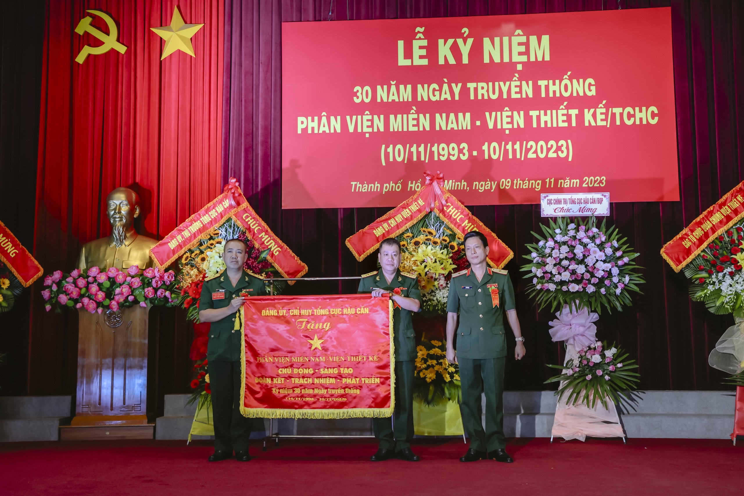 Tại buổi lễ, Phân viện miền Nam - Viện Thiết kế vinh dự, tự hào đón nhận thư khen của Bộ trưởng Bộ Quốc phòng và Cờ lưu niệm của Tổng cục Hậu cần.