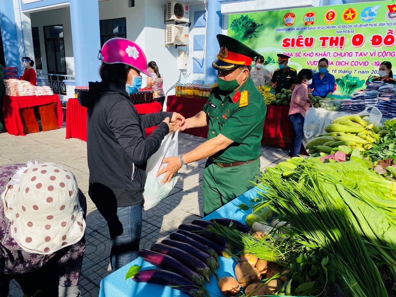 Thượng tá Trần Văn Chiến, Chỉ huy trưởng Ban CHQS thành phố Bà Rịa cho biết: “Thời gian qua, LLVT thành phố luôn kề vai sát cánh cùng cấp ủy, chính quyền địa phương trong việc hỗ trợ, giúp đỡ bà con có hoàn cảnh khó khăn trong phòng, chống dịch Covid-19. Việc tổ chức “Siêu thị 0 đồng” trong thời điểm này là thực sự cần thiết, vì hiện nay tình hình khá phức tạp, người dân đang cần sự hỗ trợ, thông qua chương trình kịp thời giúp đỡ, hỗ trợ cho người dân giảm bớt một phần khó khăn và giúp họ nâng cao ý thức phòng, chống dịch bệnh”.