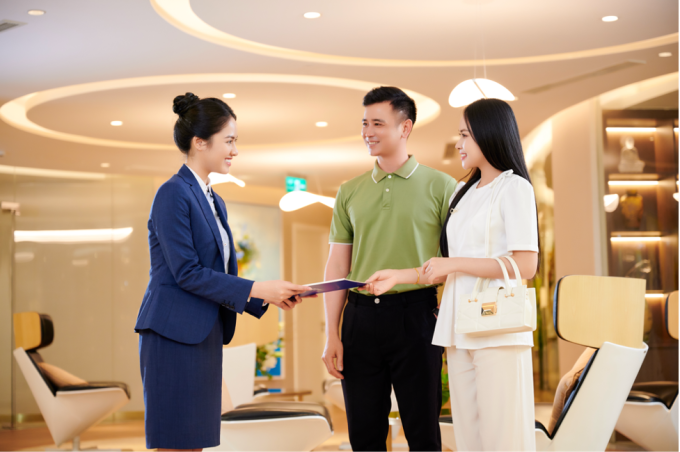 Khách hàng trải nghiệm dịch vụ tại MB. Ảnh: MB
