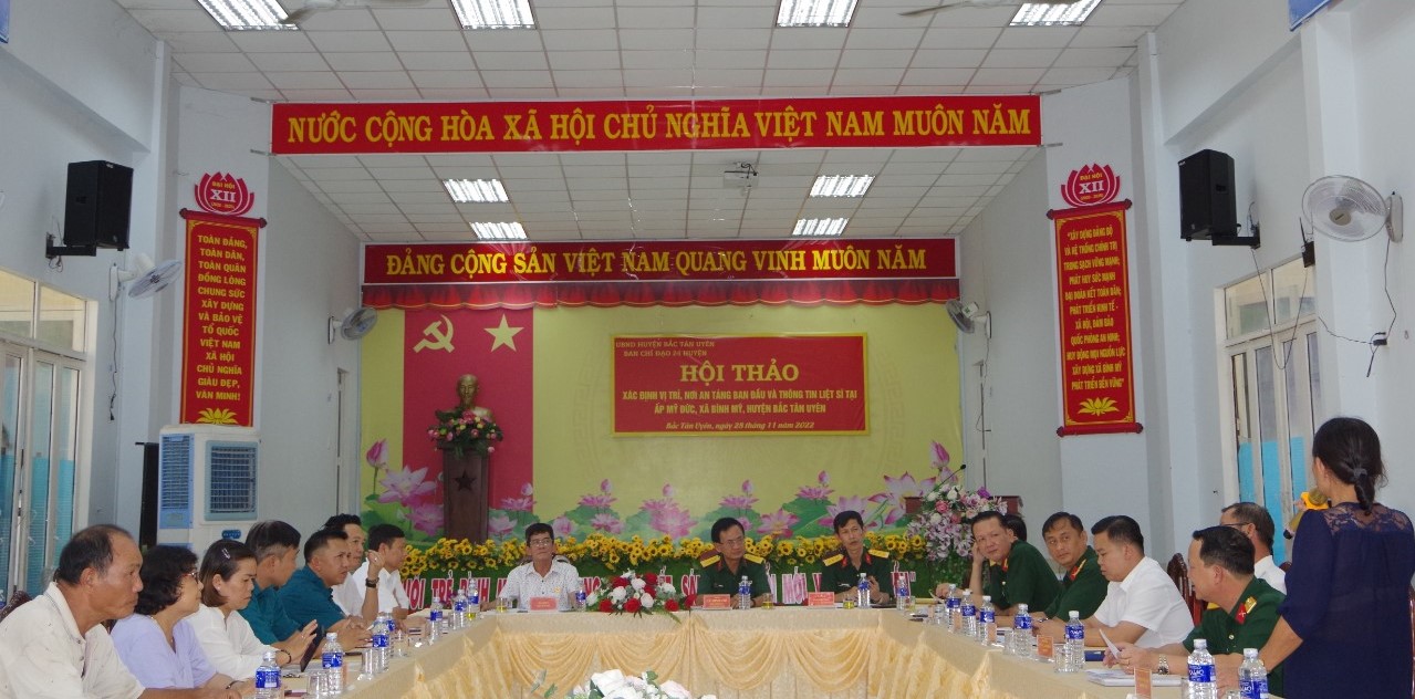 (QK7 Online) - Ngày 28-11, Ban chỉ đạo 24 huyện Bắc Tân Uyên, tỉnh Bình Dương tổ chức hội thảo xác định vị trí, nơi ăn táng ban đầu và thông tin mộ liệt sỹ tại ấp Mỹ Đức, xã Bình Mỹ, huyện Bắc Tân Uyên.