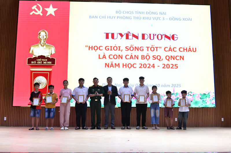 (QK7 Online) - Ngày 3/9, Đại tá Bùi Văn Sỹ, Ủy viên Ban Thường vụ Đảng ủy, Phó Chính ủy Bộ CHQS tỉnh Đồng Nai chủ trì lễ tuyên dương thí sinh trúng tuyển vào các học viện, nhà trường Quân đội năm 2025.