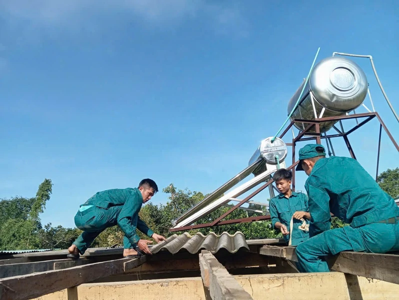 Tham gia xây dựng Nhà tình nghĩa quân - dân tặng gia đình khó khăn về nhà ở trên địa bàn.
