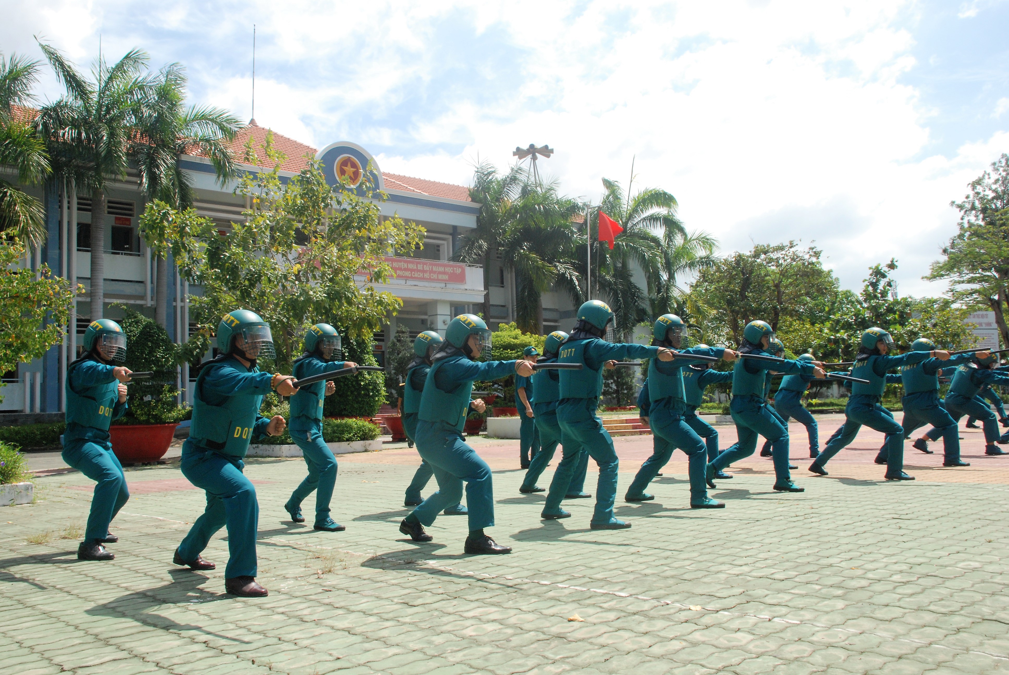 Huấn luyện chiến thuật dân quân sử dụng gậy, lá chắn trong các tình huống đánh dồn trong chiến đấu; đội hình triển khai lá chắn kép; đội hình ngăn chặn; xử lý tình huống lực lượng biểu tình sử dụng gạch đá, gậy, bom xăng, chống người thi hành công vụ…
